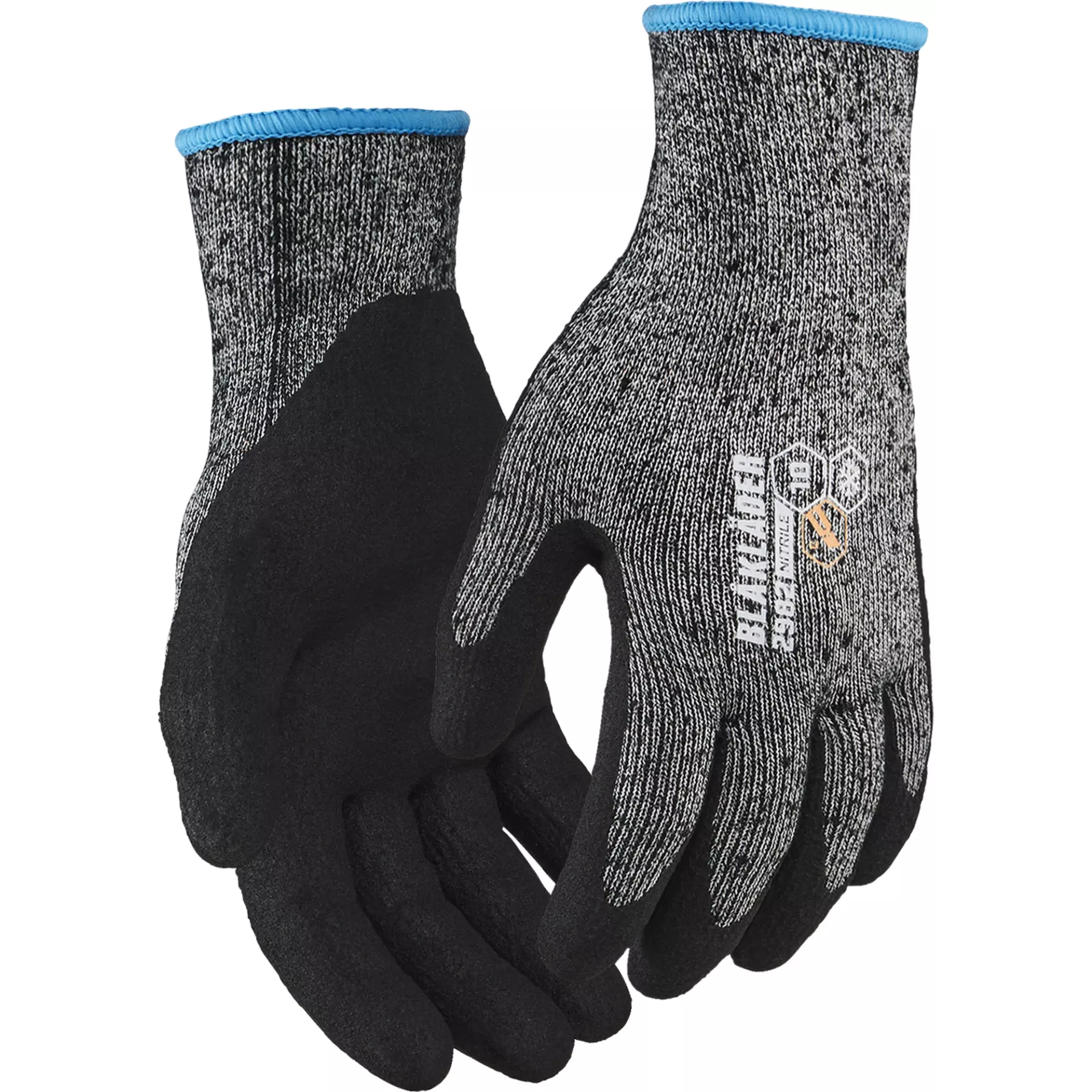 Lined cut protection glove with Level C cut protection and nitrile coating on the palm for optimal grip in demanding work environments. The heat-insulating terry lining and the breathable microporous coating offer comfort in cold temperatures, while the sandy surface structure ensures a secure grip. The metal fibre-free and chrome-free glove is ideal for all-round work in oily, dirty, and cold environments.