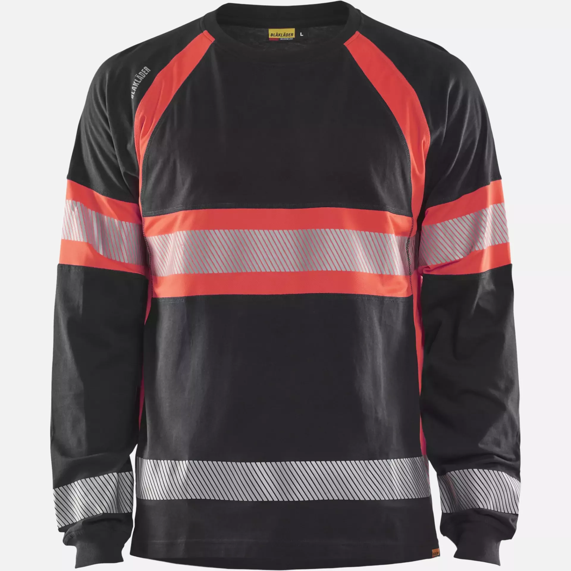 Long-sleeved High-Vis shirt made of 100% cotton with jersey construction and 180 g/m² fabric weight. The garment offers Class 1 visibility through High-Vis details and segmented reflective stripes, ensuring optimal detectability in unprotected environments. Certified according to EN ISO 20471 Class 1 and Oeko-Tex Standard 100 for textile safety.