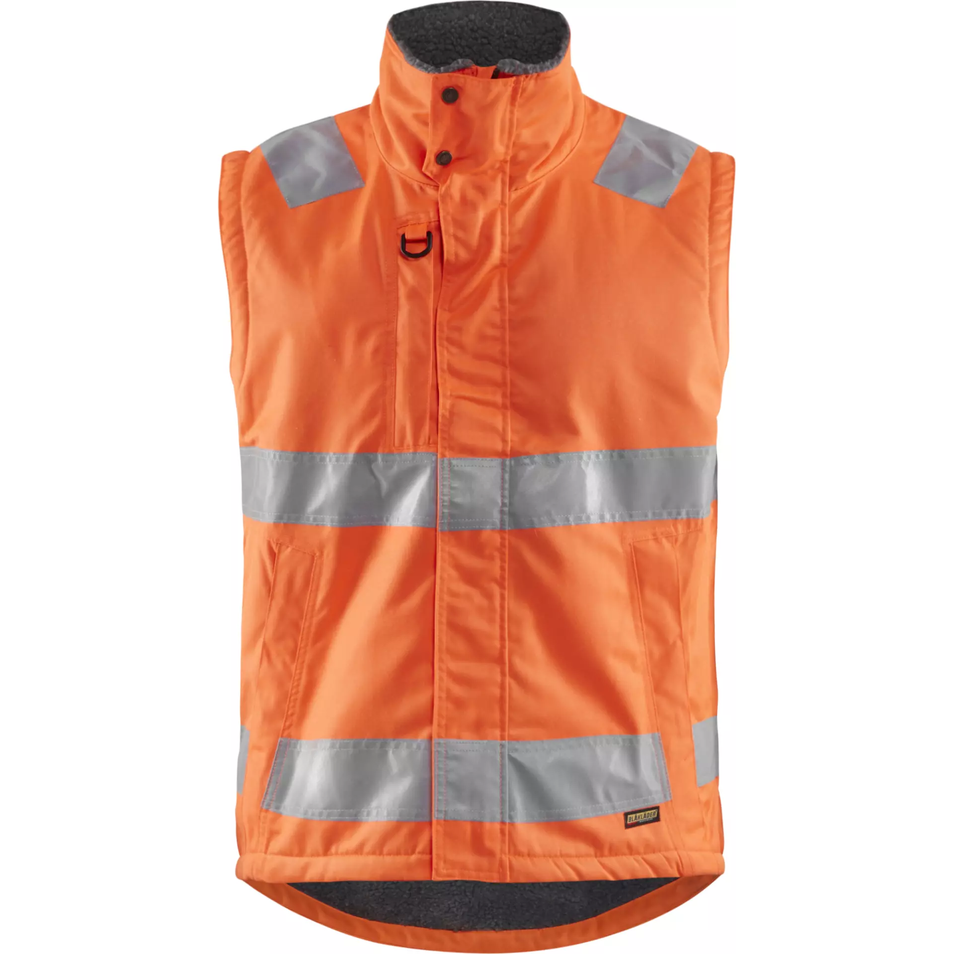 This High-Vis winter vest offers warm comfort thanks to pile lining and meets EN ISO 20471 Class 2 safety standards. With a water and dirt-repellent surface, 65 mm wide reflective strips, and practical pockets including a kangaroo pocket on the back for gloves, it is ideal for outdoor work. The extended back and adjustable hem ensure optimal wearing comfort in various working conditions.