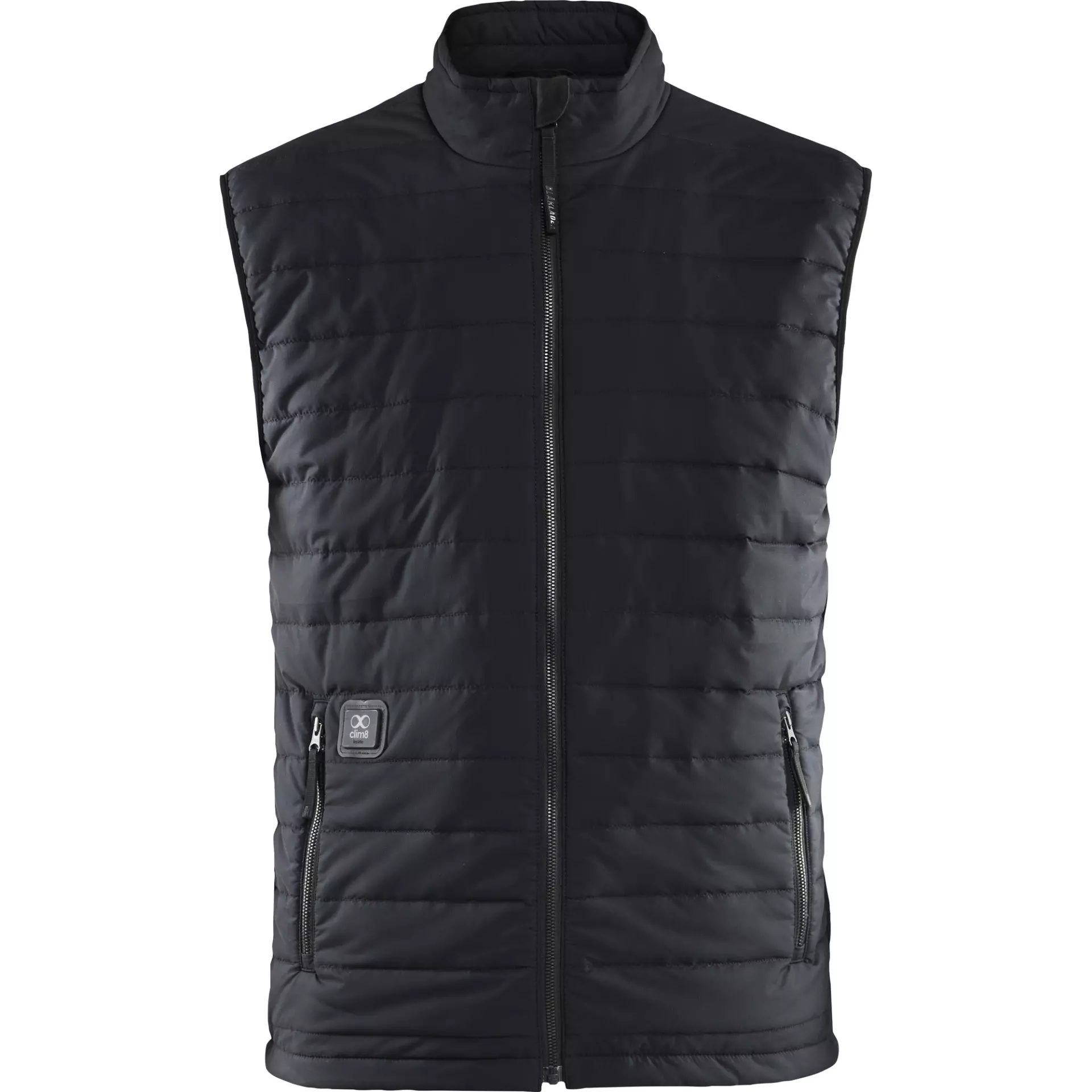 This intelligent heated vest uses Clim8® technology for automatic temperature regulation and detects fluctuations in body temperature to heat accordingly. The system works with three heating elements and a control module with an indicator light, powered by a rechargeable 7.4V 3000mAh Li-ion battery. The vest is washable and offers practical features such as water-repellent properties, stretch inserts, and warm lining for optimal comfort in cold working conditions.