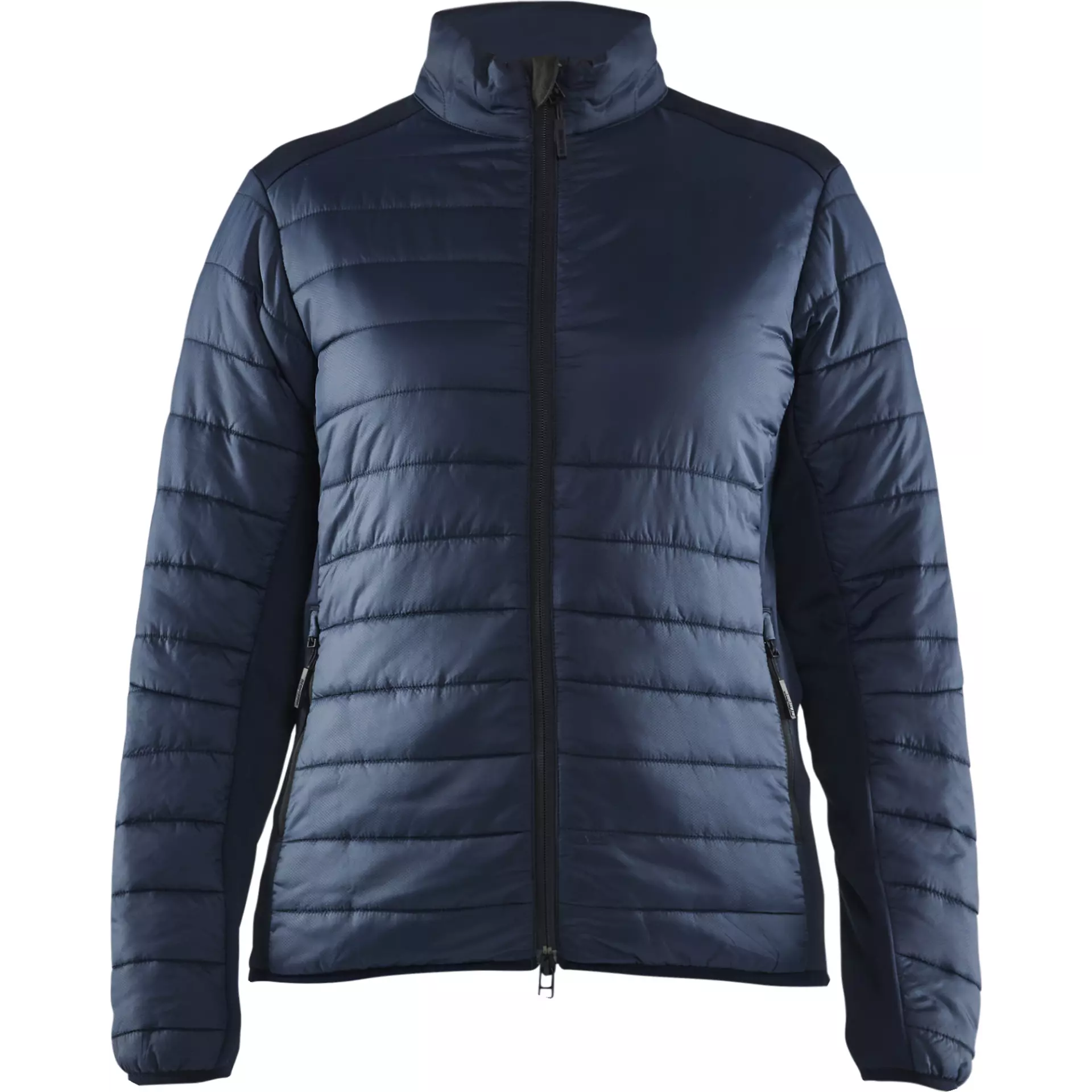 This quilted women's jacket is perfect as a second layer or standalone protection against cold, wind, and moisture. With warm lining on the body and sleeves as well as water-repellent properties, it offers optimal comfort for various work environments. The jacket features unquilted areas for company branding and combines functionality with practical details such as a 2-way zipper and stretch side panels.