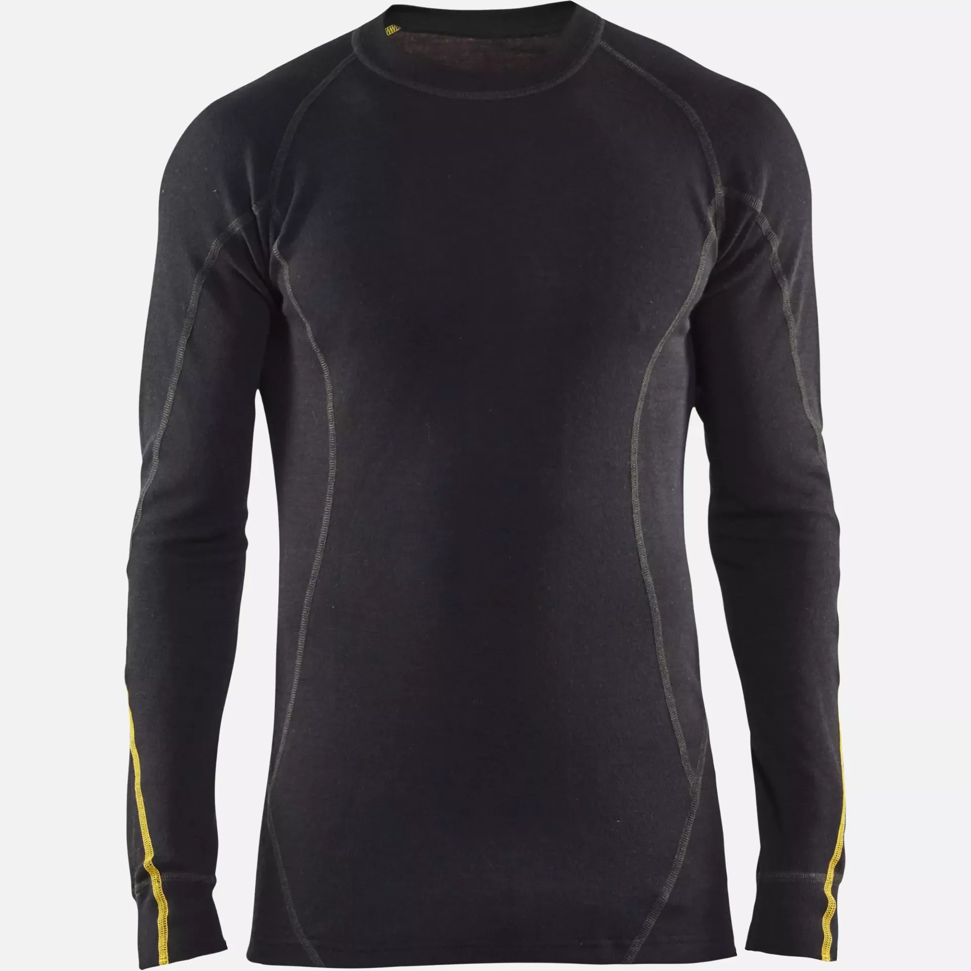 Flame-retardant undershirt made of high-quality Merino wool with an ergonomic fit and protective properties for demanding work environments. The undershirt offers the unique ability to retain warmth in both wet and dry environments and is ideally suitable for use in indoor and outdoor areas. With a weight of 225 g/m² and anti-static as well as flame-retardant properties, it meets the highest safety standards for craftsmen, electricians, and road and construction workers.