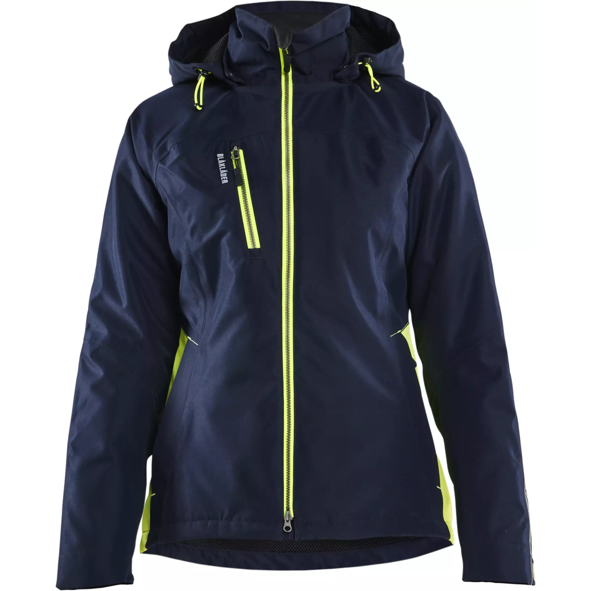 Ladies Lined Lightweight Winter Jacket, Dark Navy/Yellow