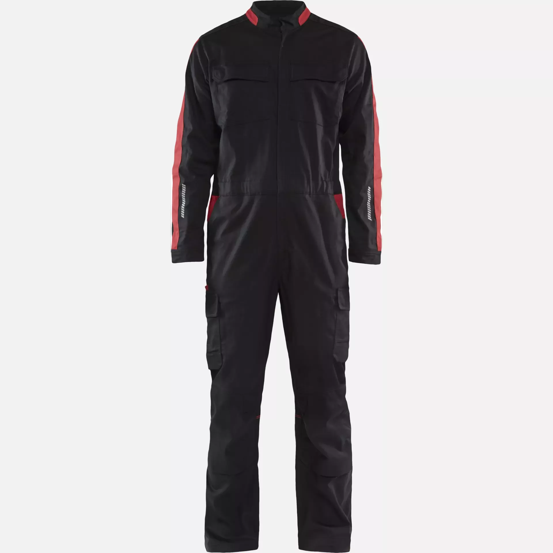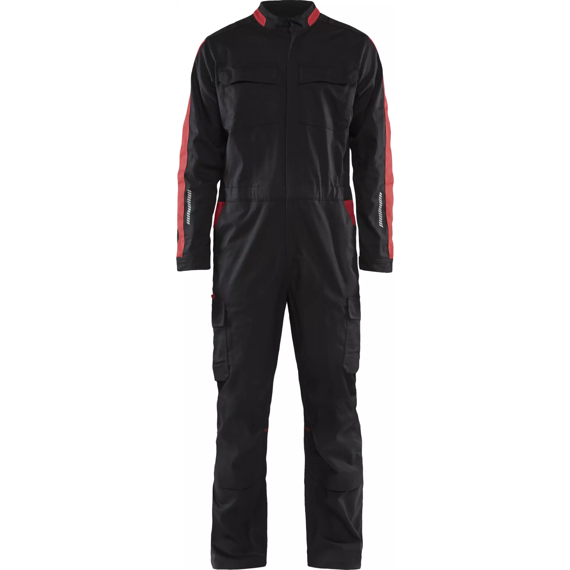 This flexible coverall made of 2-way stretch material offers optimal comfort and freedom of movement for demanding work environments. The scratch-resistant 260 g/m² twill fabric made of 63% polyester, 33% cotton and 4% Elastofin is suitable for industrial laundry and meets OEKO-TEX Standards. With reflective details on sleeves and legs as well as ergonomically shaped legs and pre-shaped sleeves, it is ideal for warehouse workers, mechanics, cleaners and tradespeople.