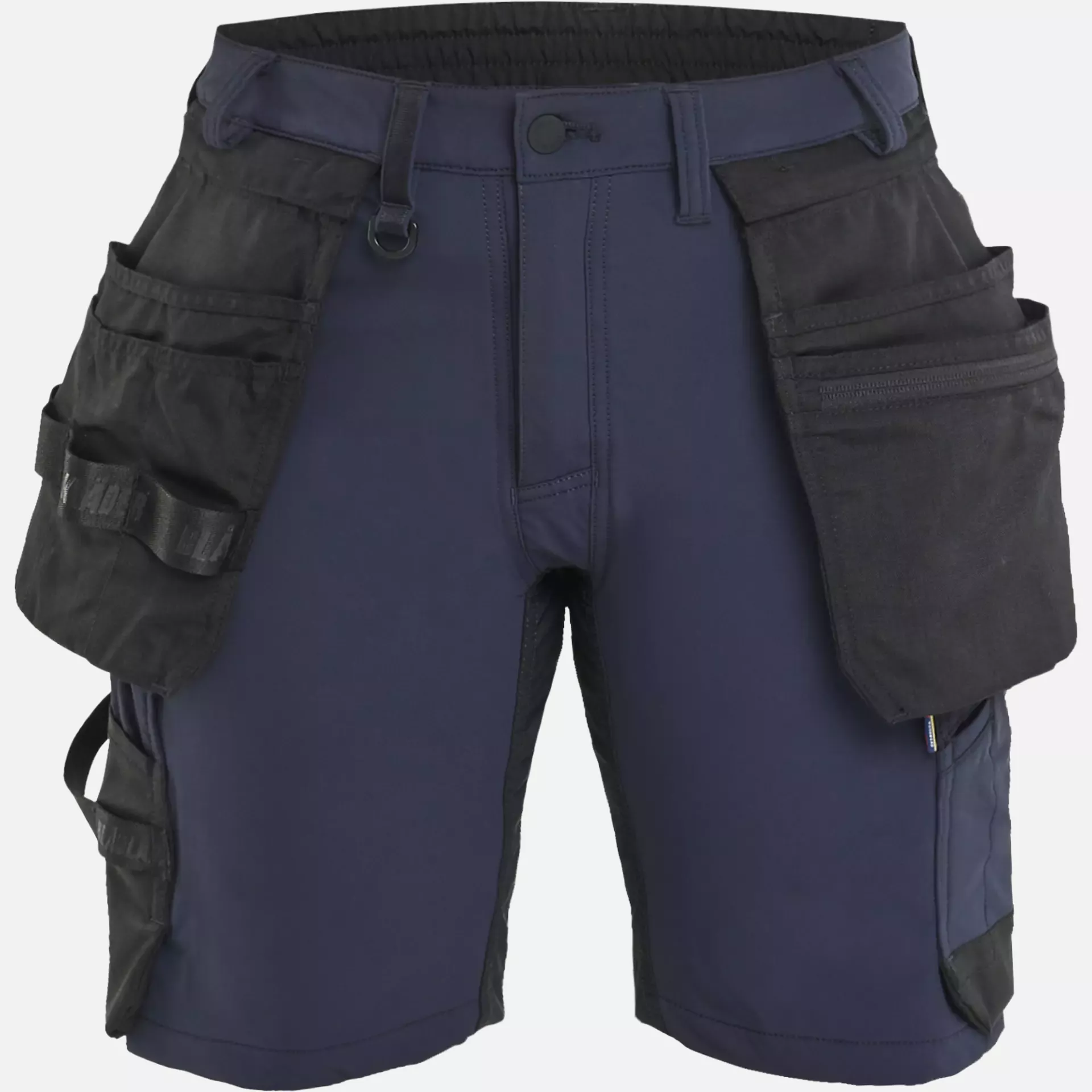 Women's fit craftsman shorts made of 4-way stretch material for ultimate comfort during trade work. The shorts feature detachable holster pockets, CORDURA®-reinforced areas, and practical tool holders. Oeko-Tex Standard 100 certified and specifically developed for female electricians, sheet metal workers, gardeners, and other tradeswomen.