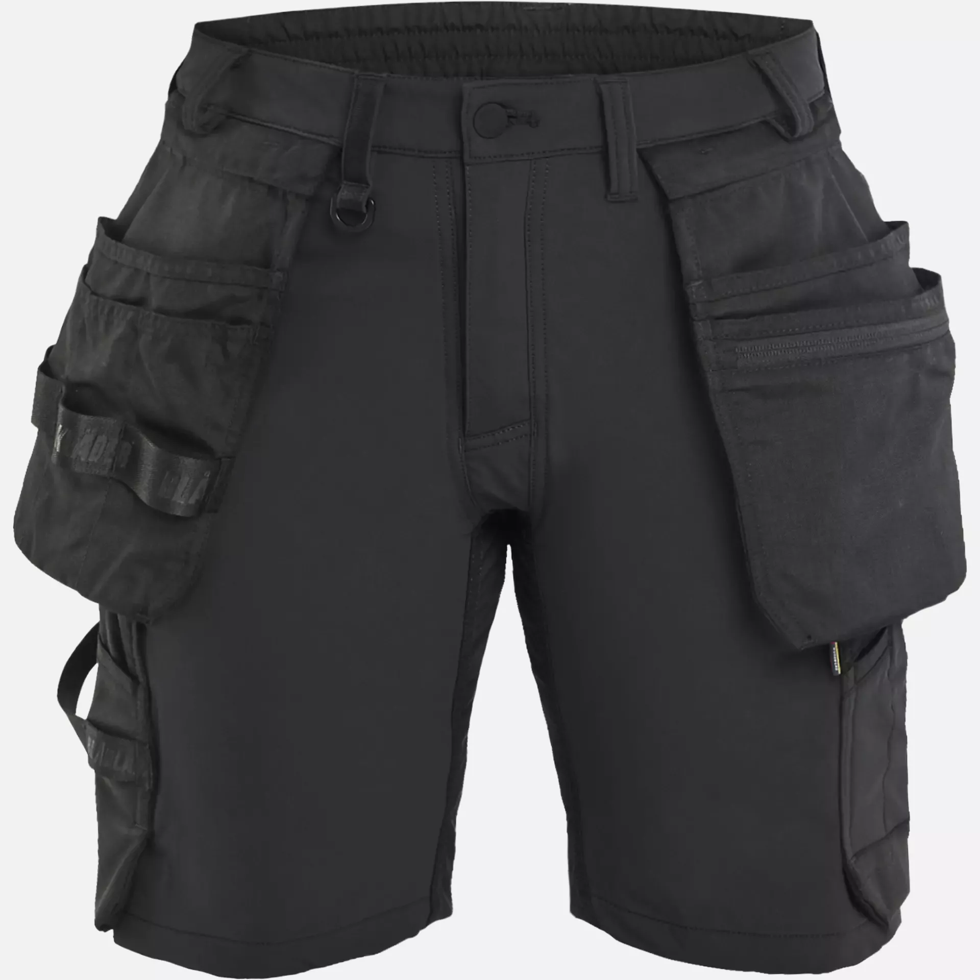 Women's fit craftsman shorts made of 4-way stretch material for ultimate comfort during trade work. The shorts feature detachable holster pockets, CORDURA®-reinforced areas, and practical tool holders. Oeko-Tex Standard 100 certified and specifically developed for female electricians, sheet metal workers, gardeners, and other tradeswomen.