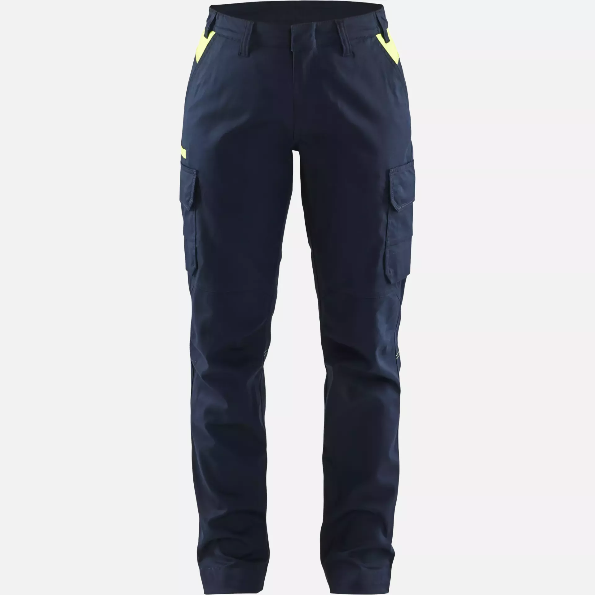 Ladies Stretch Industry Work Trousers, Dark Navy/Yellow