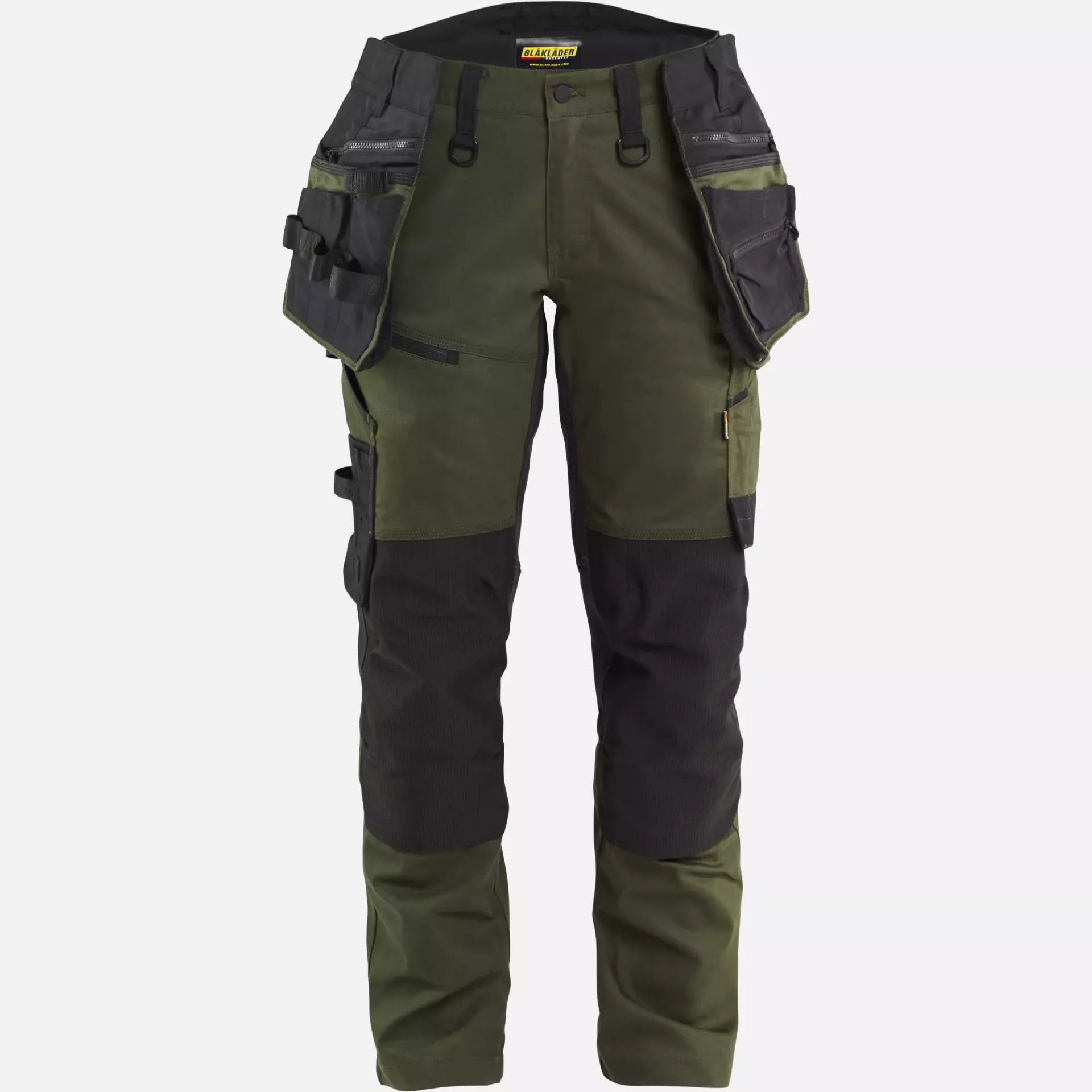 Durable craftsman trousers made of 2-way CORDURA® stretch twill with 4-way stretch panels for optimal freedom of movement and comfort. The trousers feature detachable tool pockets, reinforced kneepad pockets made of CORDURA® Stretch Dobby, and ventilation zones for increased wearing comfort. With a raised waistband at the back and a pre-formed design, they offer an ergonomic fit for various craft activities. The trousers meet EN 14404 standards for knee protection and are Oeko-Tex 100 certified.