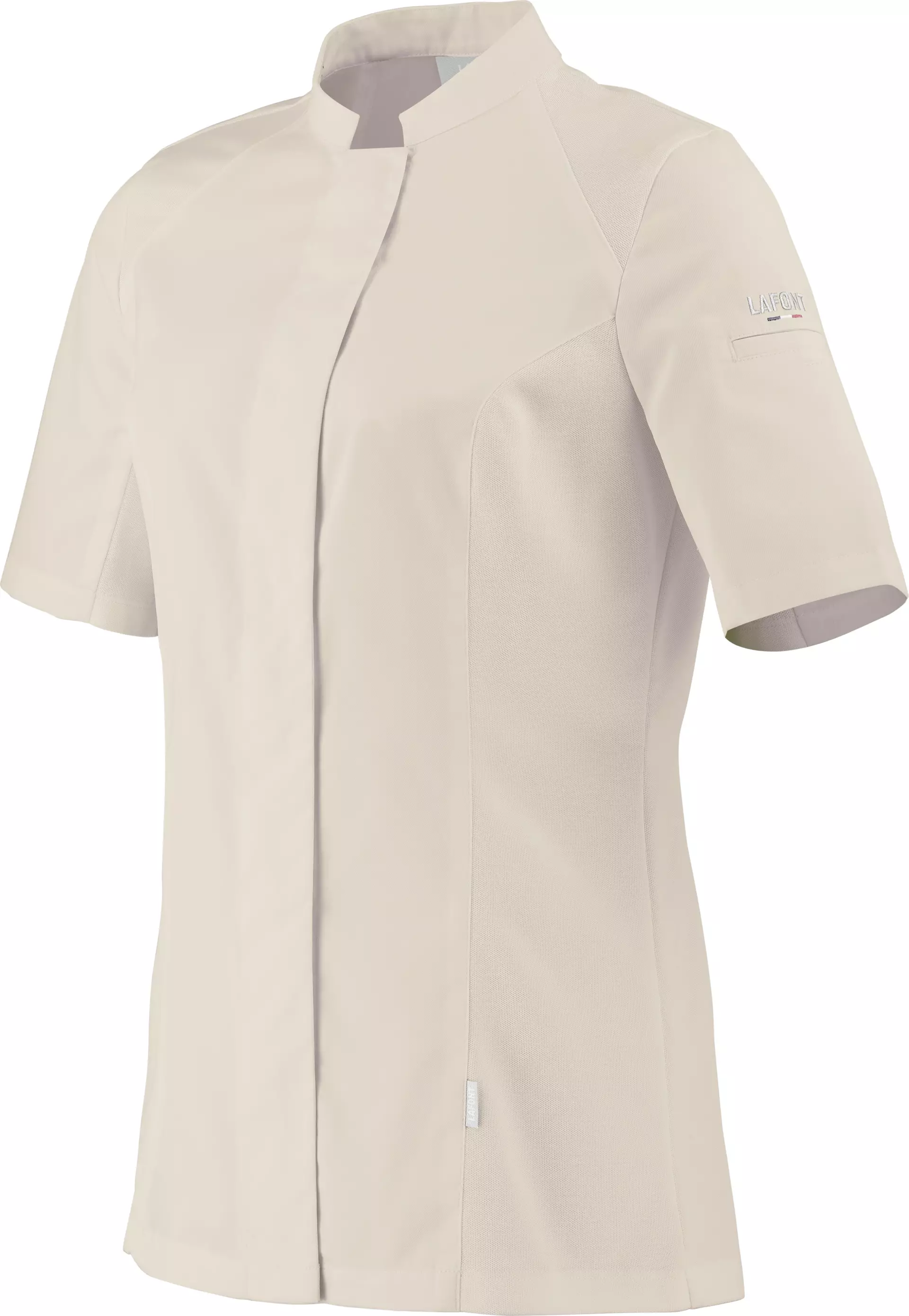 This professional chef's jacket combines functionality and modern design for everyday kitchen use. With its elegant officer collar and practical piqué mesh inserts, it ensures optimal wearing comfort even during intensive kitchen work. The concealed snap button placket allows for quick dressing and undressing, while the welt pocket on the left sleeve provides additional storage space.