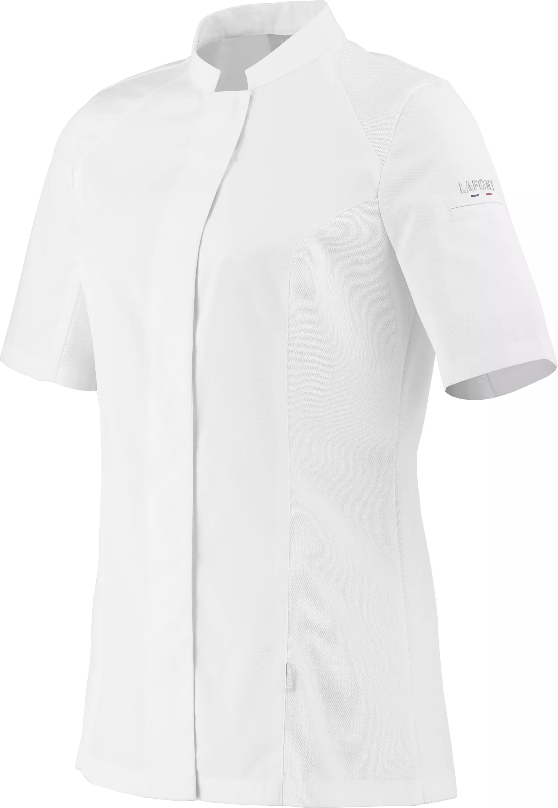 This professional chef's jacket combines functionality and modern design for everyday kitchen use. With its elegant officer collar and practical piqué mesh inserts, it ensures optimal wearing comfort even during intensive kitchen work. The concealed snap button placket allows for quick dressing and undressing, while the welt pocket on the left sleeve provides additional storage space.