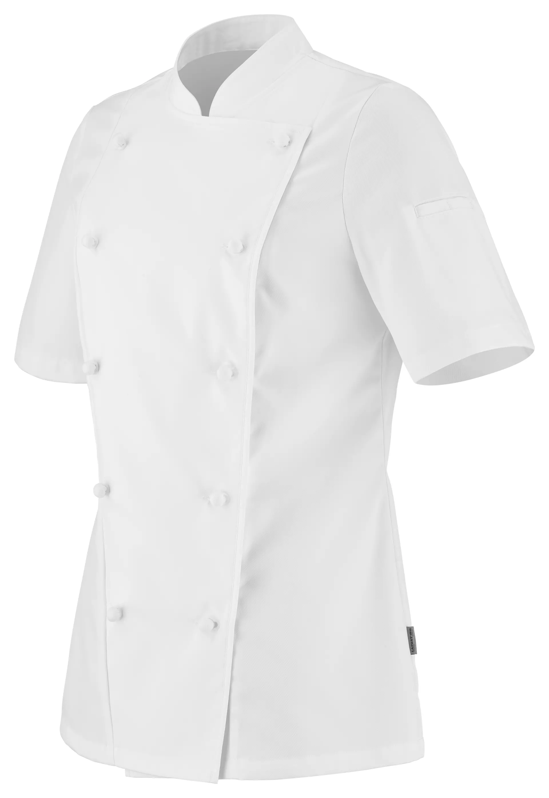 This professional chef's jacket offers a combination of functionality and stylish design for demanding kitchen environments. With its tailored fit through special darts and versatile double button placket, it adapts optimally to different body shapes. The thermal elements on the front and collar provide additional comfort during long work shifts.