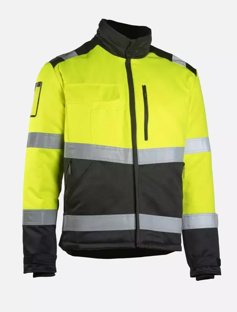 These high-visibility winter bib overalls combine superior protection with practical functionality, featuring Thinsulate 80g/m² wadding for excellent insulation and a durable water-repellent finish. The garment is constructed from a robust 245 g/m² polyester-cotton blend and includes adjustable features for optimal fit and comfort. When paired with Dimex tops, these overalls achieve Class 3 visibility certification, making them ideal for demanding winter work conditions.