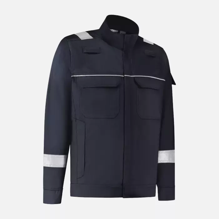 This advanced protective jacket combines multiple safety features with ergonomic design, offering comprehensive protection against flames, chemicals, static electricity, and arc flash hazards. The 350 GSM fabric blend of 99% Guardian material with 1% anti-static fiber features a chemical-proof finish and meets multiple international safety standards. Enhanced with Prolux® 50mm flame-retardant reflective striping, this jacket delivers superior visibility and protection in hazardous work environments.