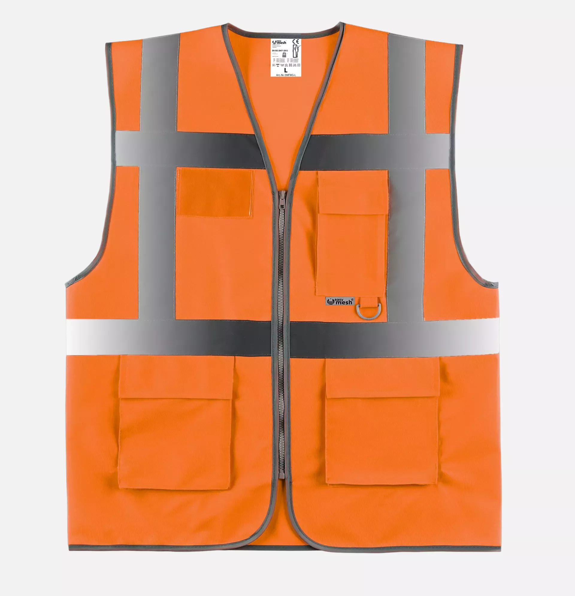 The method used to fasten the jacket or vest, affecting ease of use, security, and weather protection during work activities.