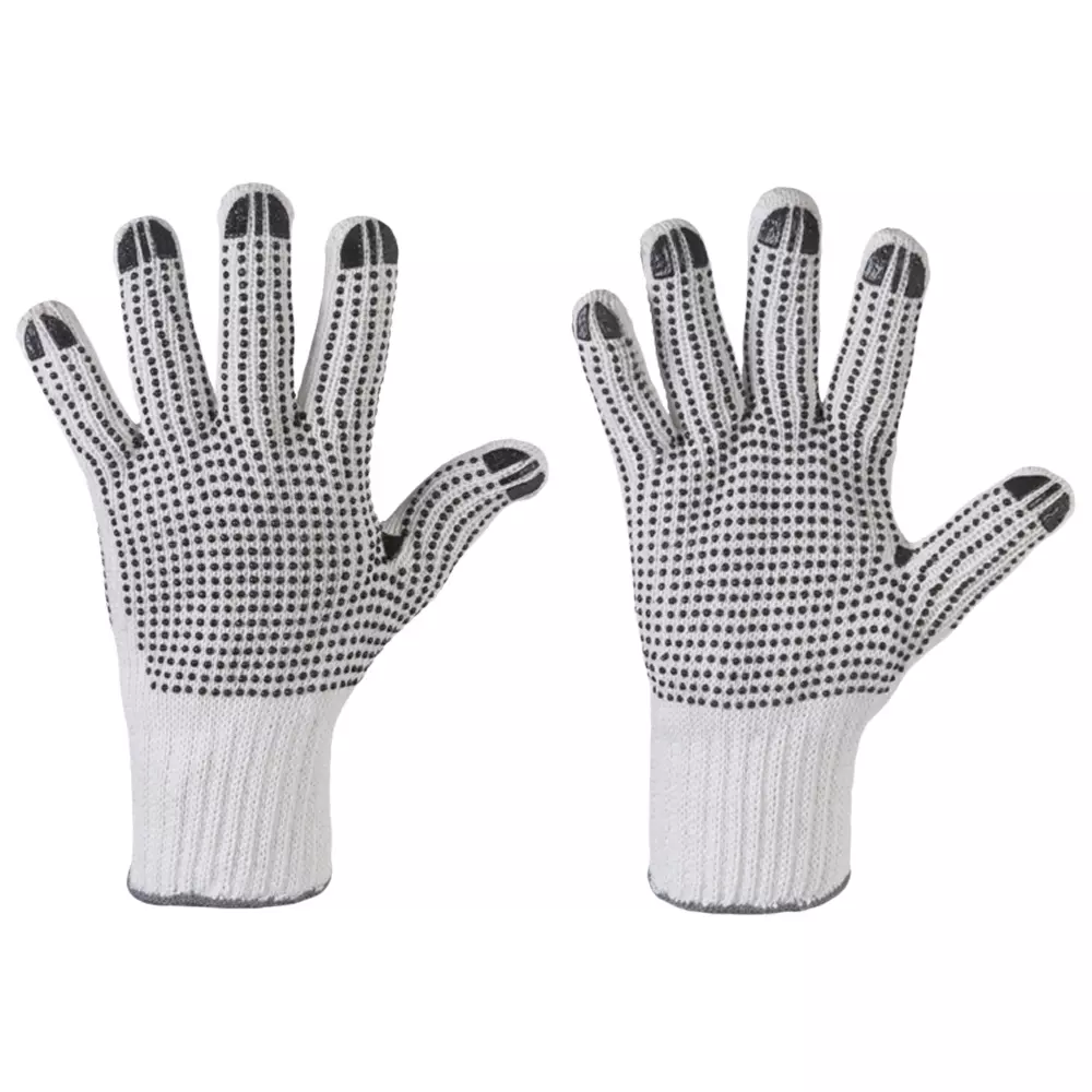 Norm: En 388 Liner: 60% Cotton, 40% Polyester, White coating: Pvc Dots, Black Sizes: 7, 8, 9, 10, 11 Seamless Knittet / 7 G