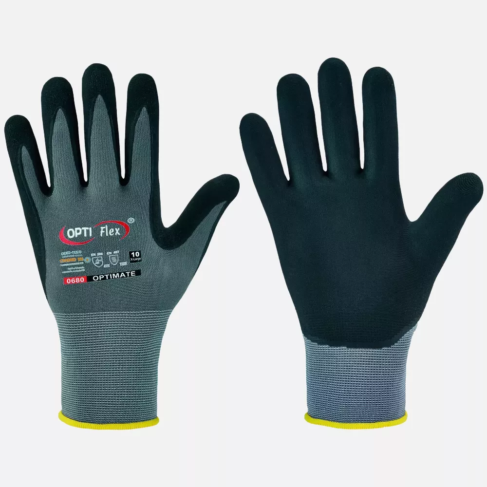 Norm: En 388, En 407Liner: 97% Polyamide, 3% Elastane, Grey coating: Nitrile Foam With Waterbased Pu, Black Sizes: 6, 7, 8, 9, 10, 11, 12 Seamless Knitted / 15 G • Oeko Tex® Standard 100, Cert. No. 15.0.69098