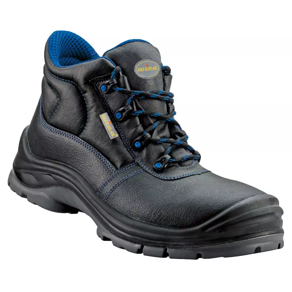 Norm: En ISO 20345 S3 Src Colour: Black/Blue Width: 11 Size: 39 47 Packing Unit: 5 Pairs Shaft Made Out Of Embossed, Full Grain, Hydrophobic Smooth Leather • Ergonomically Formed, Padded Collar • Padded Dust Tongue • Fastening By Synthetic Eyelets