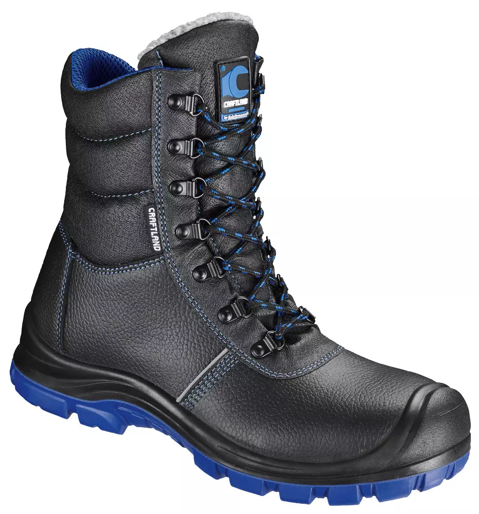 Norm: En ISO 20345 S3 Src Colour: Black/Blueupper Height: Approx. 21 Cm Width: 11 Size: 36 48 Packing Unit: 10 Pairs Upper Made Out Of Light Embossed Leather • Ergonomically Formed, Padded Collar • Padded Dust Tongue
