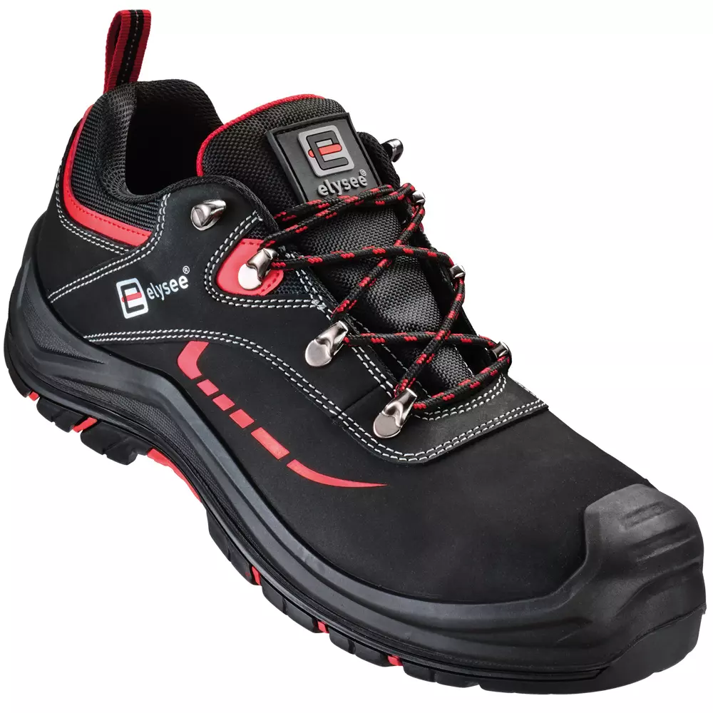 Norm: En ISO 20345 S3S Hro Sr Fo Colour: Black/Red Width: 11 Size: 36 48 Packing Unit: 10 Pairs Upper Made Of Action Nubuk Leather • Padded Dust Tongue Of Textile Material • Ergonomically Formed, Padded Collar • Fastening By Quick Tie Eyelets And Hook