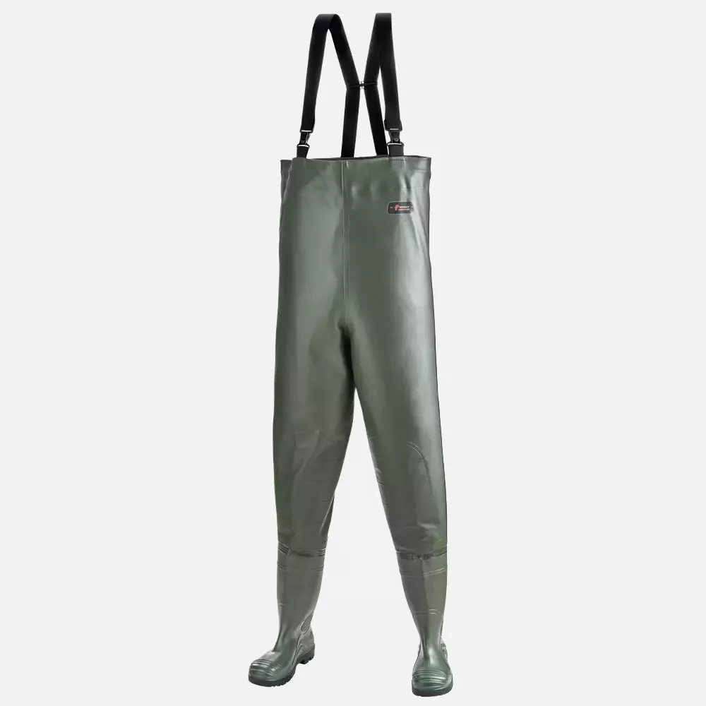 Normboot : En ISO 20345 S5 Src trousers:, En 343 Klasse 3/1 En ISO 13688: Material: Trousers: Pvc Coated Polyester Carrier Materiall: 600G/M², Boots: Pvc, Sole: Pvc/Nitrile Colour: Olive Green Size: 40 47 Packing Unit: 6 Pairs Width Adj