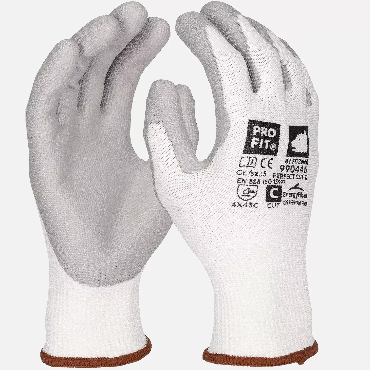 This high-quality cut protection glove of protection class C offers optimal protection for precise work. The PU coating on the palm and fingertips ensures excellent tactile sensitivity while maintaining high abrasion resistance. The combination of HPPE glass fiber and seamless knit construction provides maximum wearing comfort and freedom of movement.