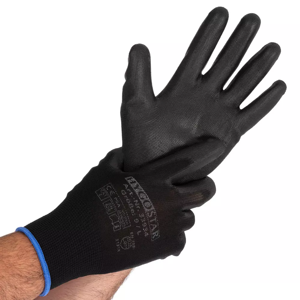 Ace Fine Knit Gloves, PU Coating, Black, 120 pairs