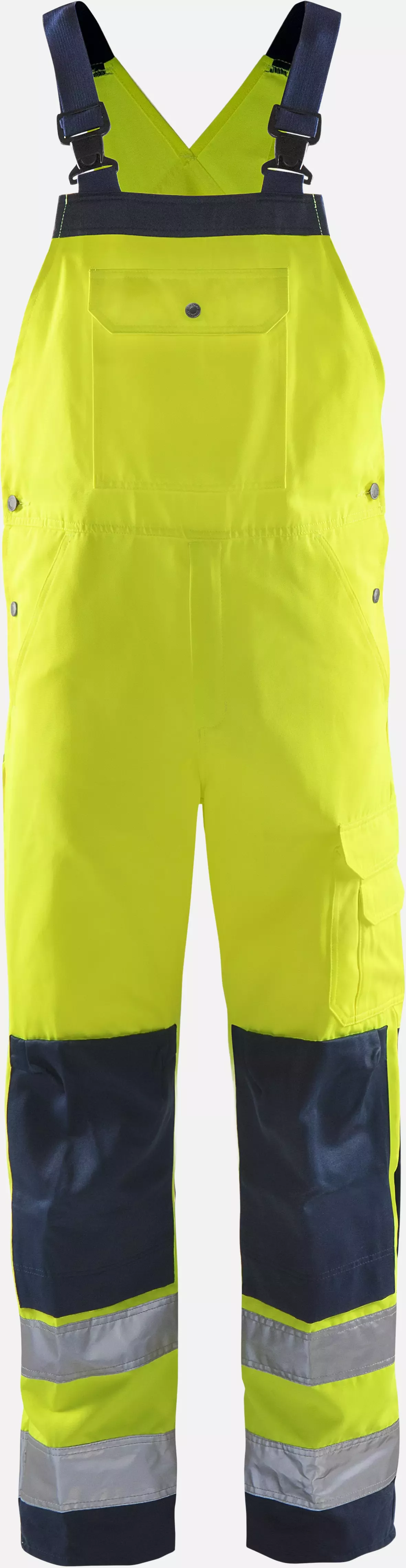 This Class 2 Hi-Vis Bib and Brace offers comprehensive protection and practical functionality for demanding work environments. Equipped with a material weight of 295 g/m² and numerous pockets, it meets the requirements of EN ISO 20471 Class 2 and is designed for year-round use. The bib and brace features height-adjustable knee pads and is approved after 25 washes.