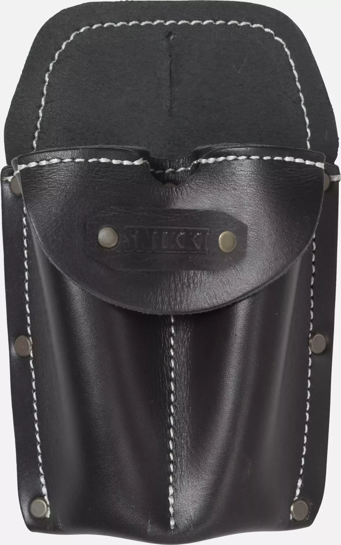 Practical knife holder with two differently sized pockets for utility knives, specially designed for floor layers and related trades. The holder provides optimal storage and quick access to cutting tools during work.