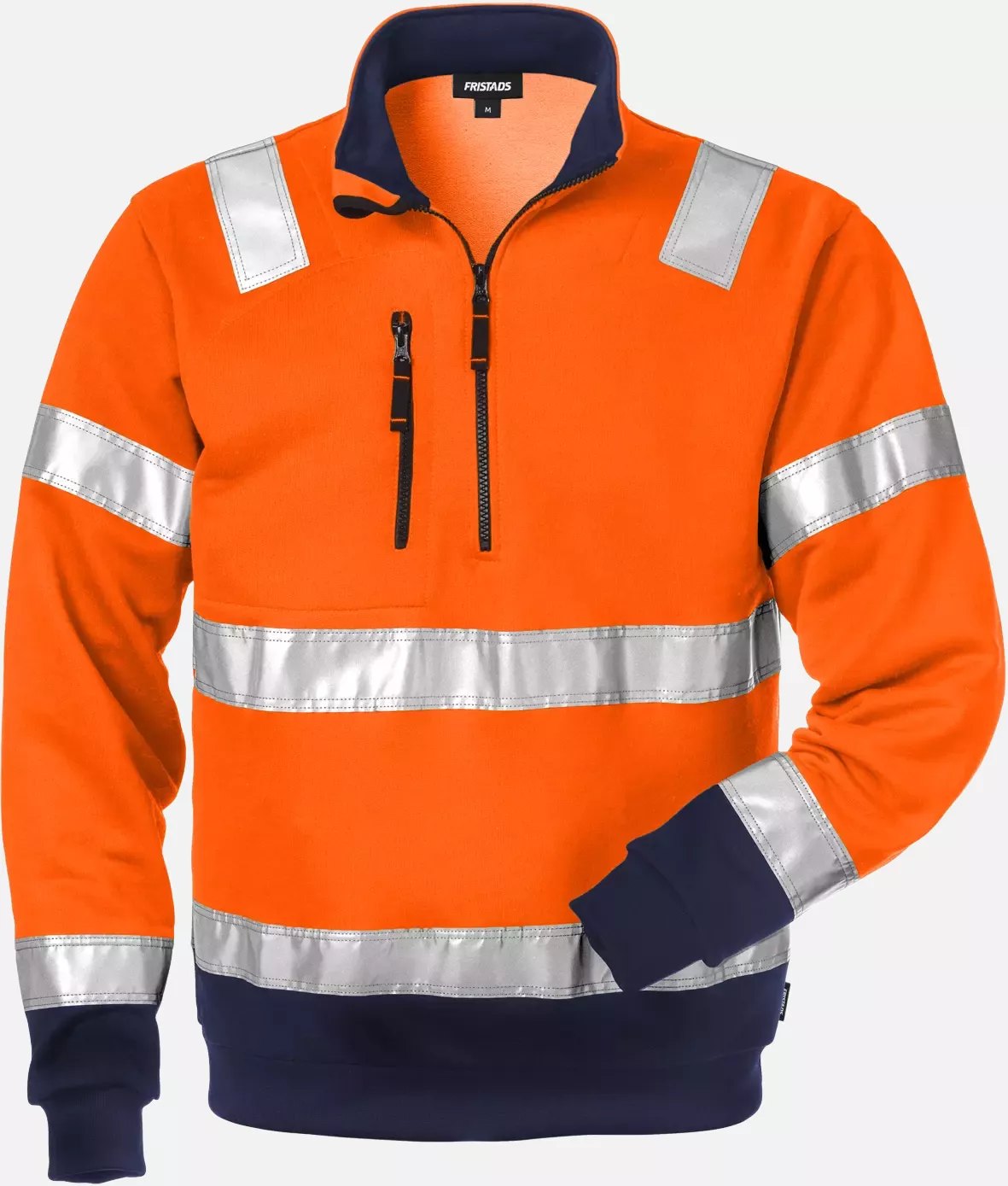 This Class 3 High-Visibility Zip Sweatshirt provides reliable warning protection for year-round upper body applications. With a fabric weight of 300 g/m² and practical features such as a phone pocket with earphone loop, it ensures comfort and functionality in everyday work. The sweatshirt meets several international safety standards and offers UV protection up to UPF 100.\n\nProduct Features:\n- Short zip at the top of the collar\n- Phone pocket with zip and opening plus loop for earphones\n- Ribbed cuffs on sleeves and hem\n- Year-round use for upper body area\n\nTechnical Details:\n- Fabric weight: 300 g/m²\n- Body zone: Upper body\n- Product categorization: Sweatshirt Half zip\n- Certified after 25 washes\n- Industrial laundry tested according to ISO 15797\n\nStandards:\n- EN ISO 20471 Class 2 and Class 3 depending on size\n- EN 13758-2 UPF 40 UV protection, material approved UPF 100 UV protection\n- RIS-3279-TOM Issue 2 UK Railway Standard\n- OEKO-TEX® certified