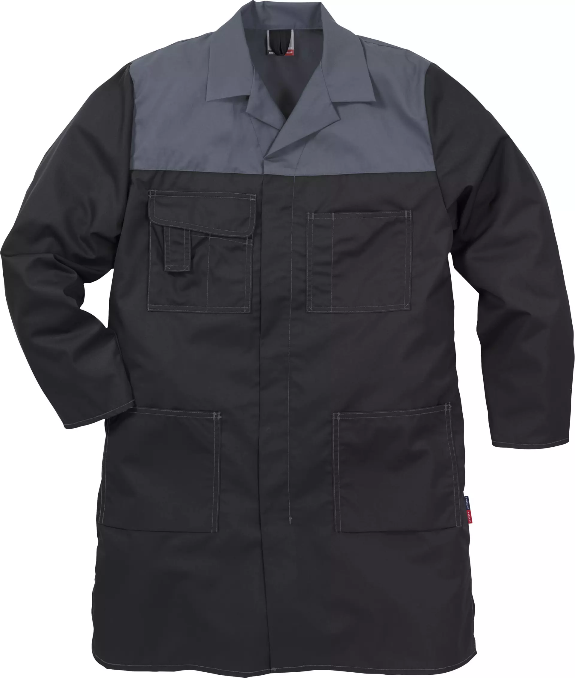 This two-tone, ¾ length coat offers a robust construction for industrial use thanks to its triple stitching and contrast stitching. With practical storage options and an adjustable back belt, it ensures both functionality and comfort. The suitability for industrial laundering according to ISO 15797 and OEKO-TEX® certification underscore the quality and sustainability of the product.