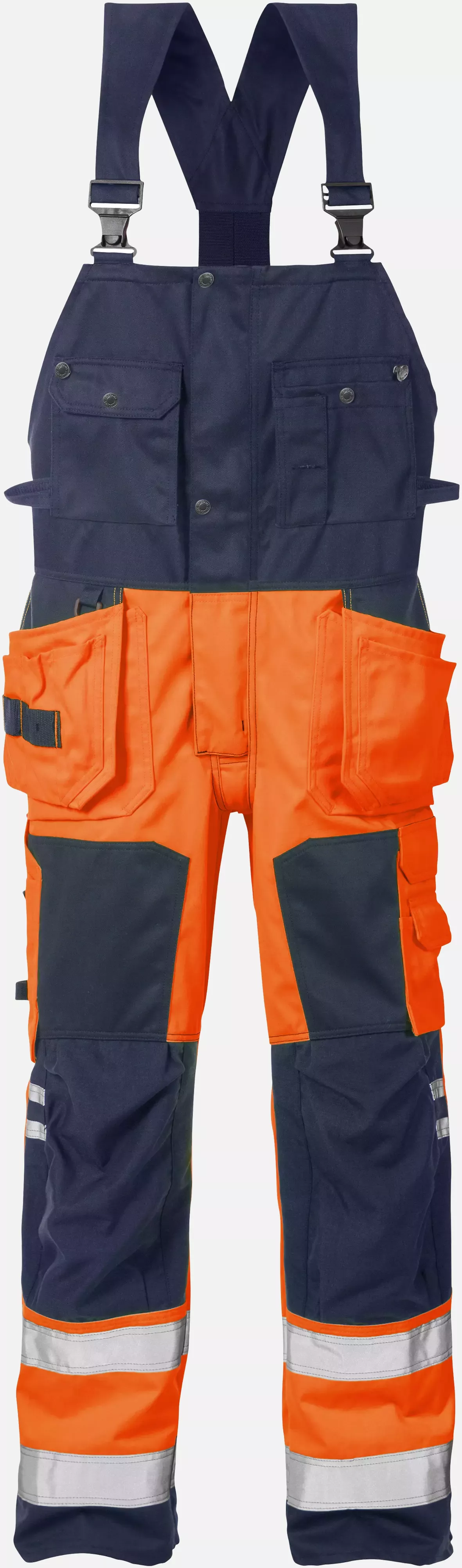This Class 2 Craftsman Bib and Brace offers comprehensive high-visibility protection and practical functionality for demanding work environments. Specially designed for craftsmen, it features CORDURA® reinforcements at critical stress points, pre-bent knees, and height-adjustable kneepad pockets. The bib and brace features a well-designed pocket system with tuckable pockets, tool loops, and various storage options for optimal work efficiency.