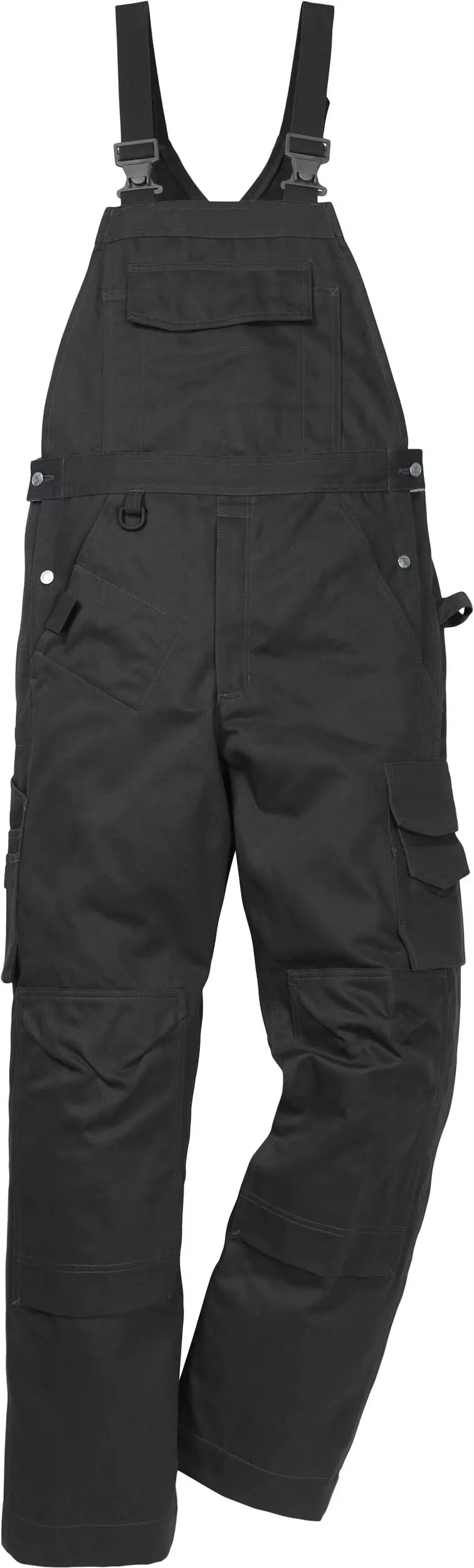 These cotton bib overalls with knee pockets offer comprehensive functionality for industrial work environments. The robust construction with 3-needle flat seams and diagonally cut back panel ensures durability and optimal fit. With numerous pockets, adjustable elements and knee protection compatibility, they are ideally designed for demanding workplaces.