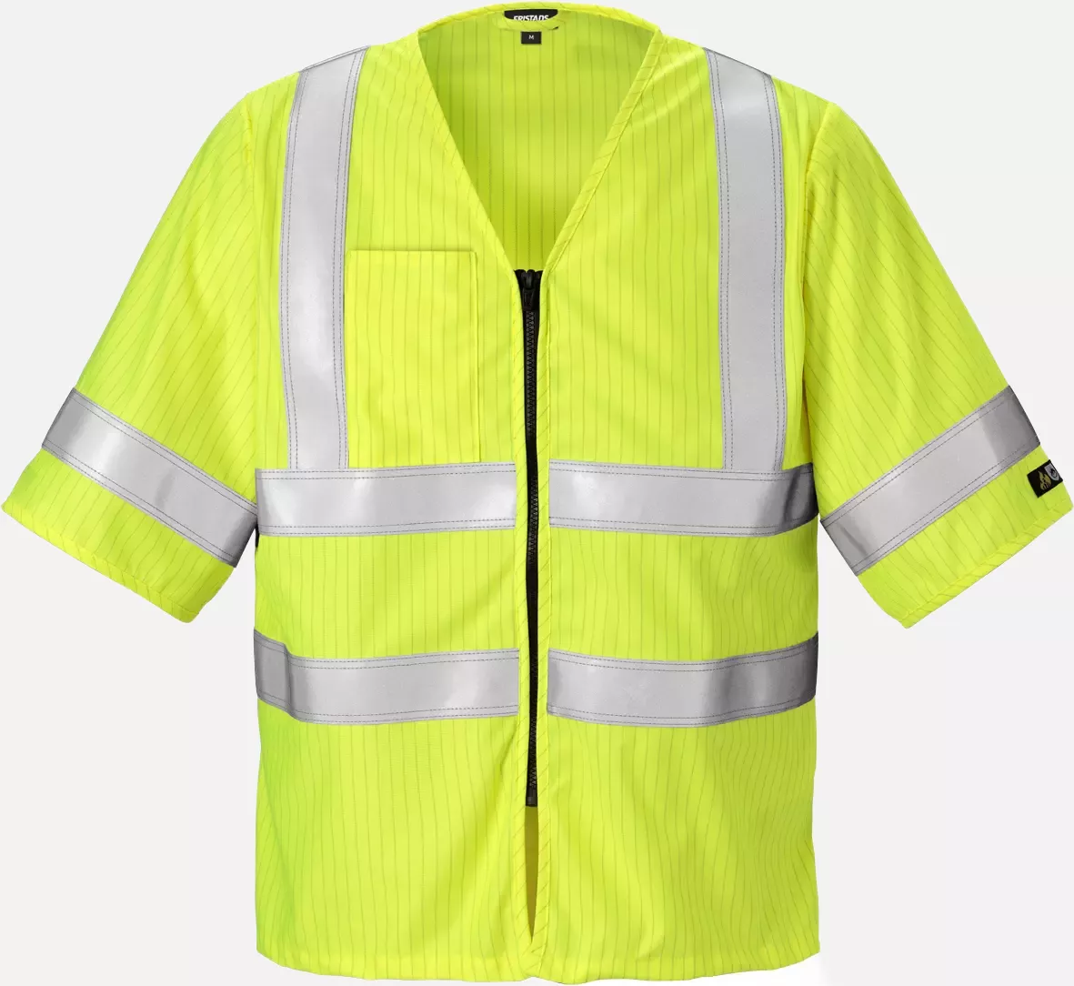 This Class 3 multi-norm high-visibility vest offers comprehensive protection for ATEX environments while meeting high visibility requirements. With a material weight of 120 g/m² and year-round suitability, it is designed for upper body protection in demanding work environments. The vest should be worn over garments complying with ISO 11612 and is tested and approved according to several European standards.