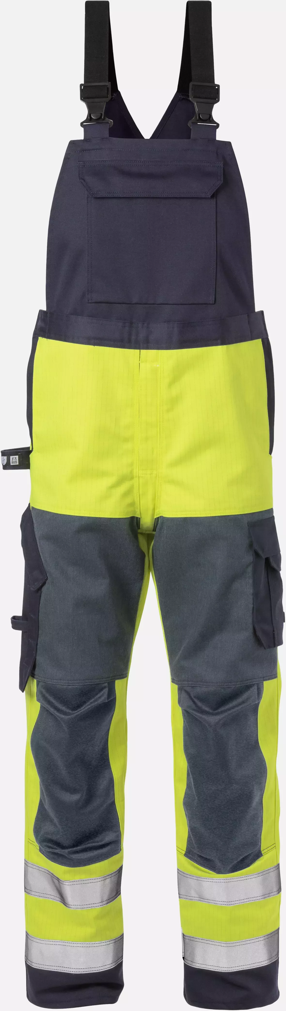 This flame-retardant Class 2 high-visibility bib and brace offers comprehensive protection for demanding work environments with flame, electric arc, and high-visibility requirements. The multi-norm bib and brace features CORDURA® and Aramid reinforcements in critical areas as well as numerous practical pockets and attachment options. With a fabric weight of 365 g/m² and reinforcements of 340 g/m², it meets the highest safety standards and is designed for year-round use.