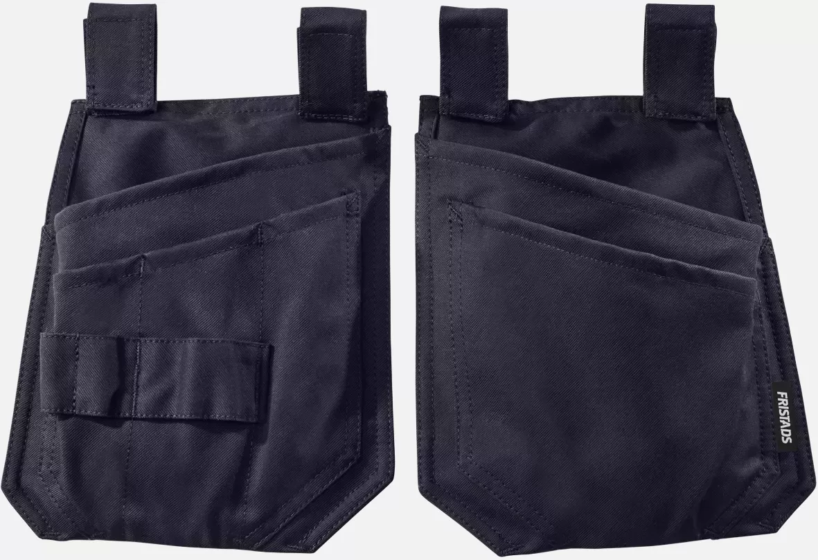 Professional nail pockets with two CORDURA® reinforced, loose-hanging outer pockets for optimal tool organization. Attachment is via Velcro fastener and ensures compatibility with various work trouser models. The fabric used meets several safety standards for flame protection, anti-static properties, and electric arc protection.
