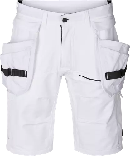 These craftsman stretch shorts offer optimal comfort during physically demanding activities thanks to their full-stretch construction on the front, back, and leg panels. The functional pocket configuration with detachable CORDURA®-reinforced holster pockets and special tool holders makes them ideal for craft and construction work. The thoughtful design combines practical storage options with durable material reinforcements in high-stress areas.