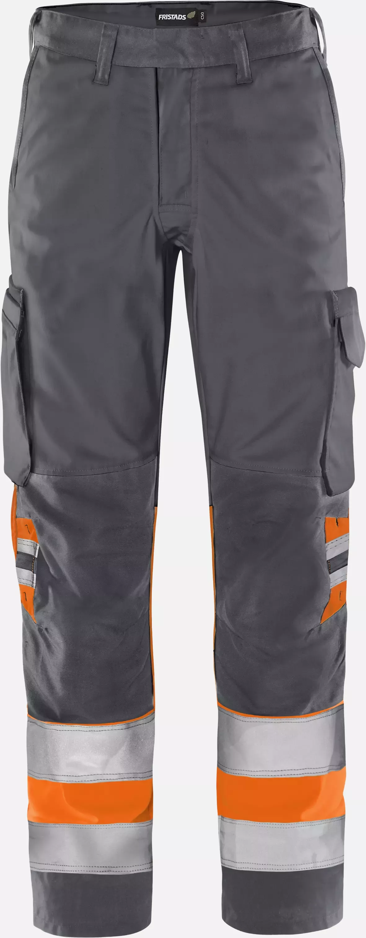 These high-visibility trousers from the Fristads Green collection combine sustainability with professional protection and functionality. With CORDURA® reinforcements at critical points, height-adjustable knee pads and extensive pocket equipment, they offer optimal working comfort. The trousers meet EN ISO 20471 Class 1 for visibility and provide UPF 40 UV protection, while the adjustable leg length enables an individual fit.