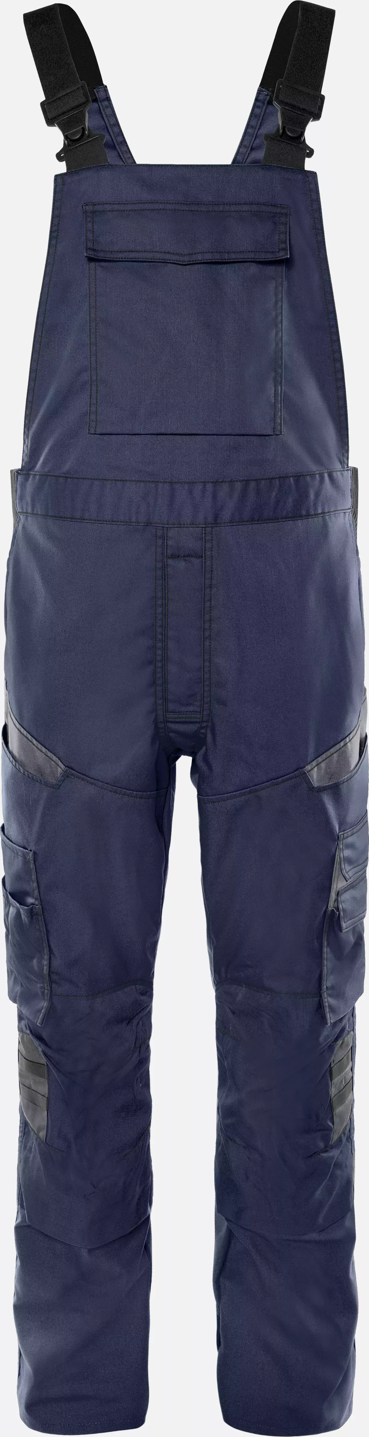 This bib and brace offers mechanical stretch quality for optimal freedom of movement and comfort in industrial applications. With CORDURA®-reinforced knee pockets and leg hems as well as dark grey reflective details, it ensures durability and visibility. The extensive pocket arrangement and adjustable elastic braces make it the ideal choice for year-round professional use.