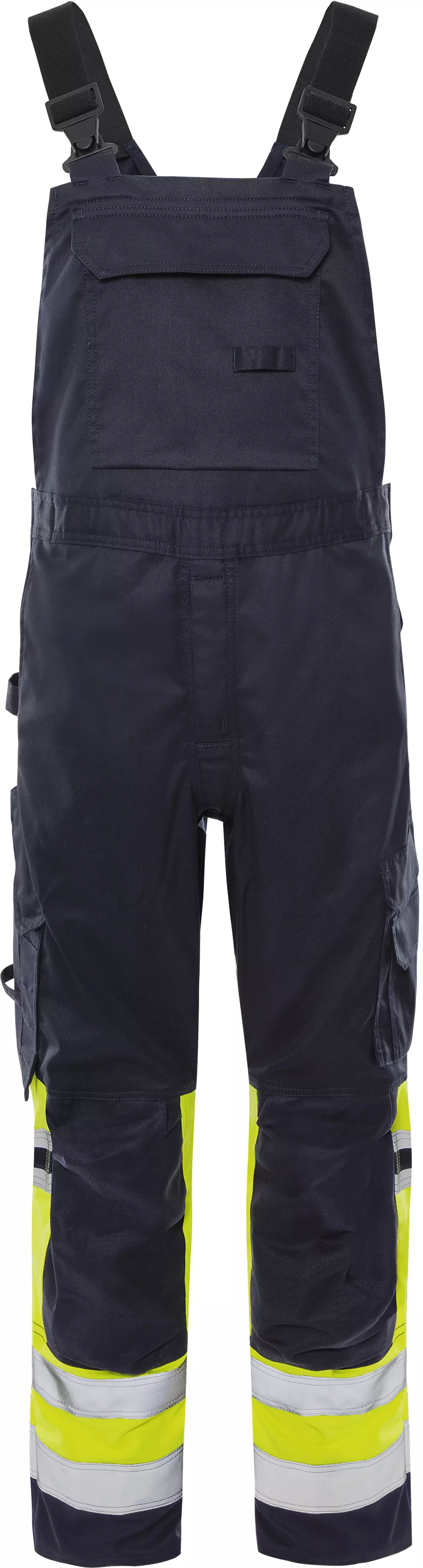 These multinorm bib overalls made from stretch material offer comprehensive protection for demanding work environments with arc flash, flame and high-visibility protection requirements. The dirt, oil and water repellent bib overalls feature numerous CORDURA®-reinforced pockets and areas for increased durability. With elastic suspenders and waist adjustment, they ensure optimal wearing comfort while meeting multiple safety standards.