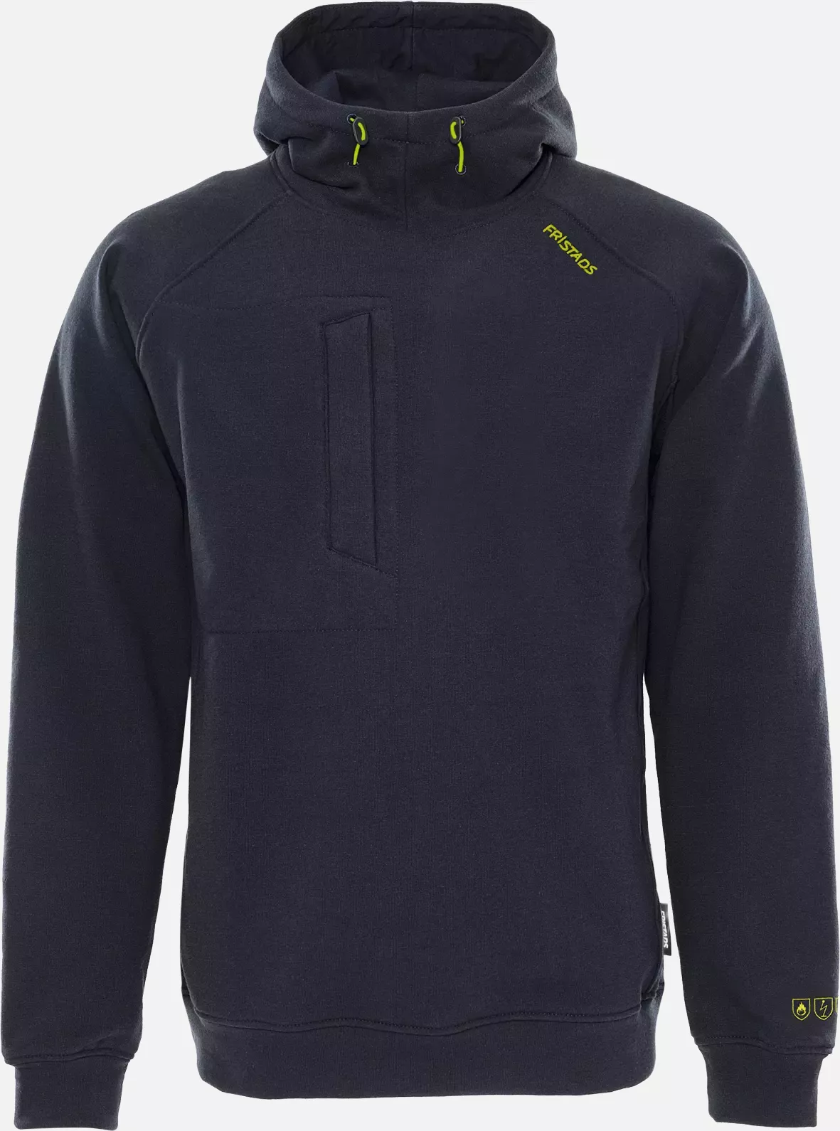This flame-resistant hooded sweatshirt offers optimal protection and comfort for demanding work environments. The soft and stretchy material with brushed inside ensures high wearing comfort, while comprehensive safety certifications provide reliable protection against electric arcs, flames and UV radiation. The thoughtful construction with adjustable hood and practical chest pocket makes it the ideal choice for year-round use in multi-standard work environments.