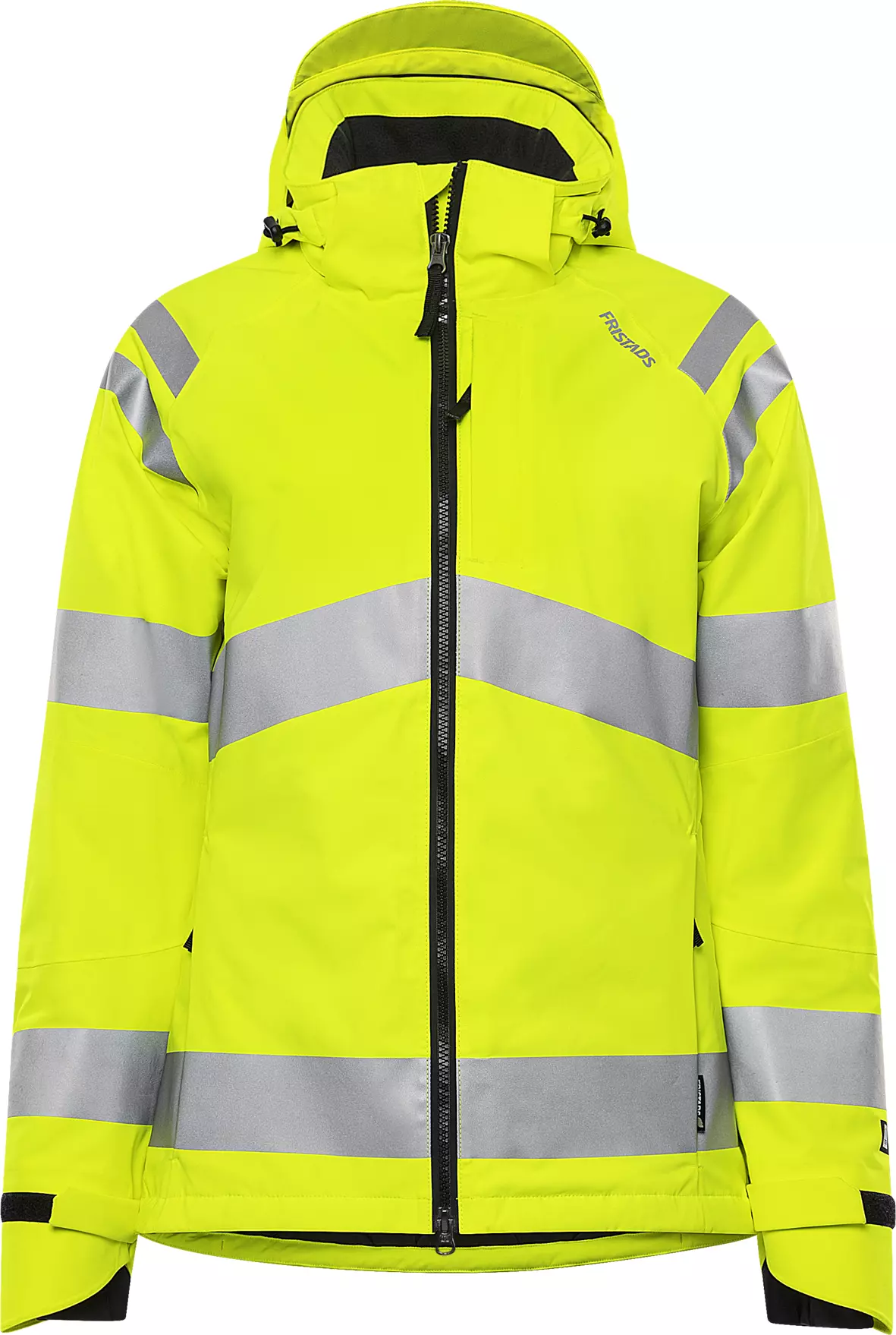 This high-visibility winter jacket for women offers Class 3 visibility and combines weather protection with high wearing comfort through 4-way stretch material and breathable properties. With a water column of 13,000 mm and welded seams, it ensures reliable protection against weather conditions. The jacket meets several safety standards including EN ISO 20471 Class 3 and is designed for use in demanding work environments.