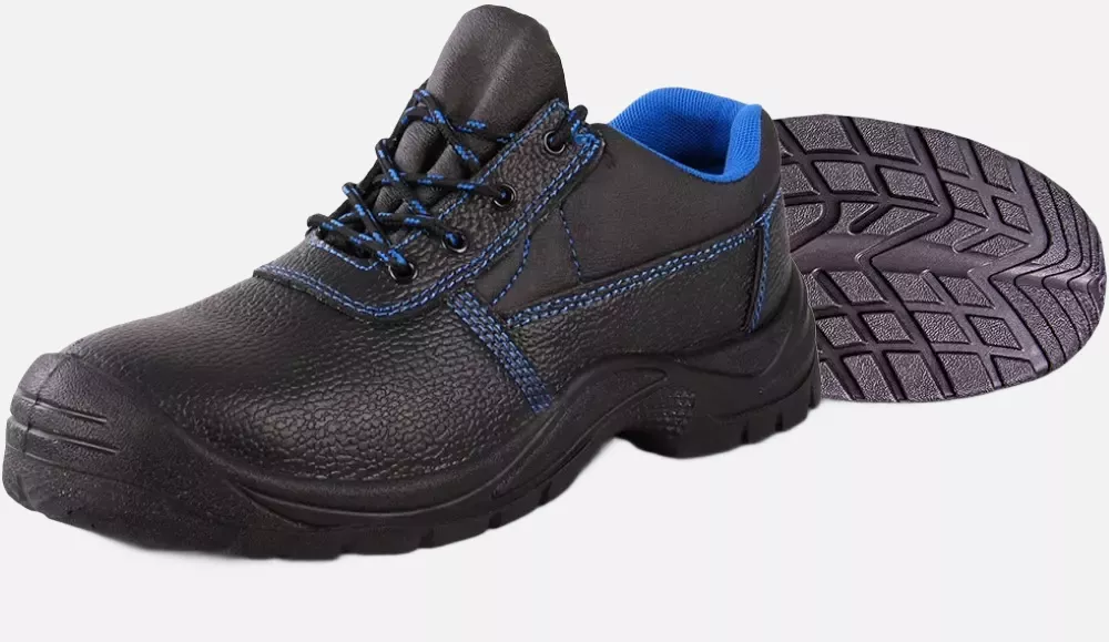 S3 Safety Low Shoe made of robust cow leather with special 2-layer PU outsole, breathable lining, steel toe cap and steel midsole. EN ISO 20345
