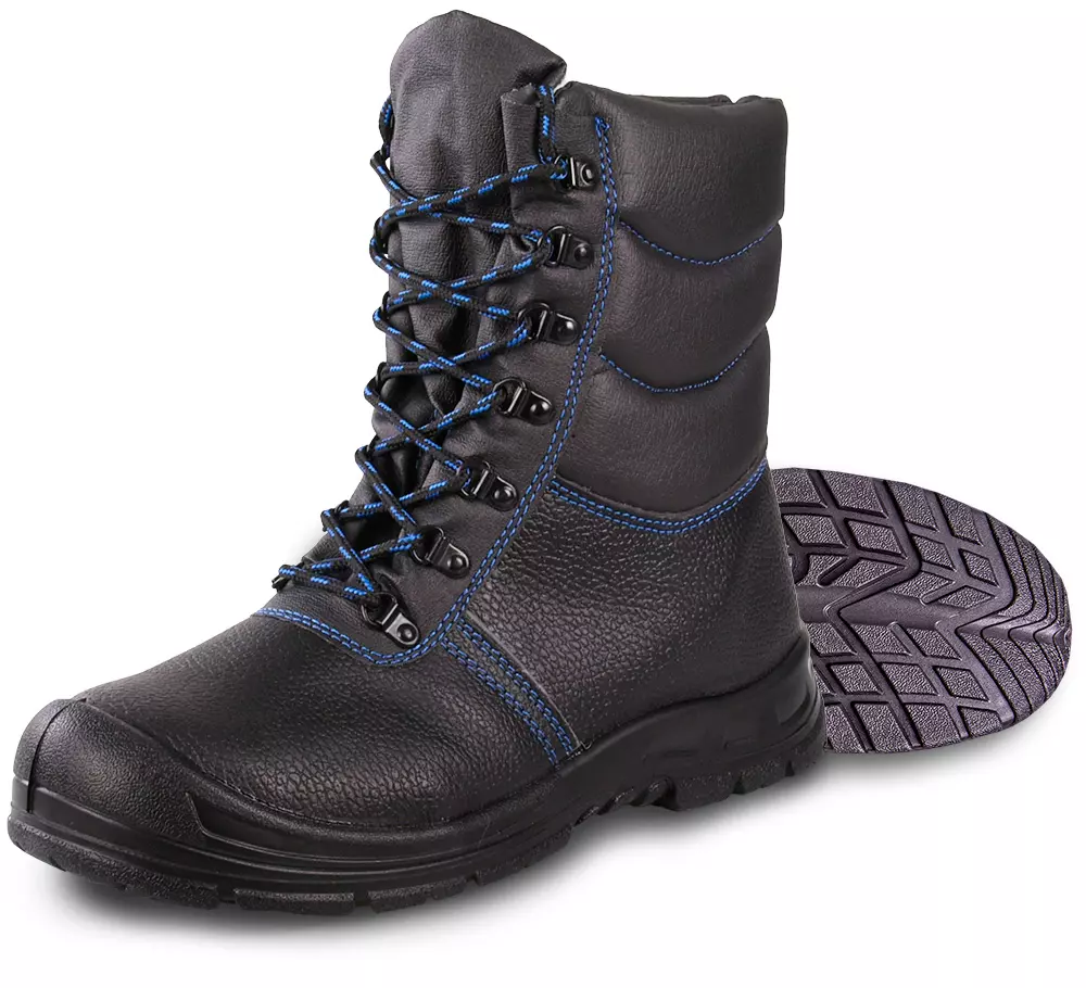 S3 winter safety boots made of robust cowhide with special 2-layer PU outsole, faux fur lining, lacing, steel toe cap and steel midsole, shaft height 21.5 cm. EN ISO 20345
