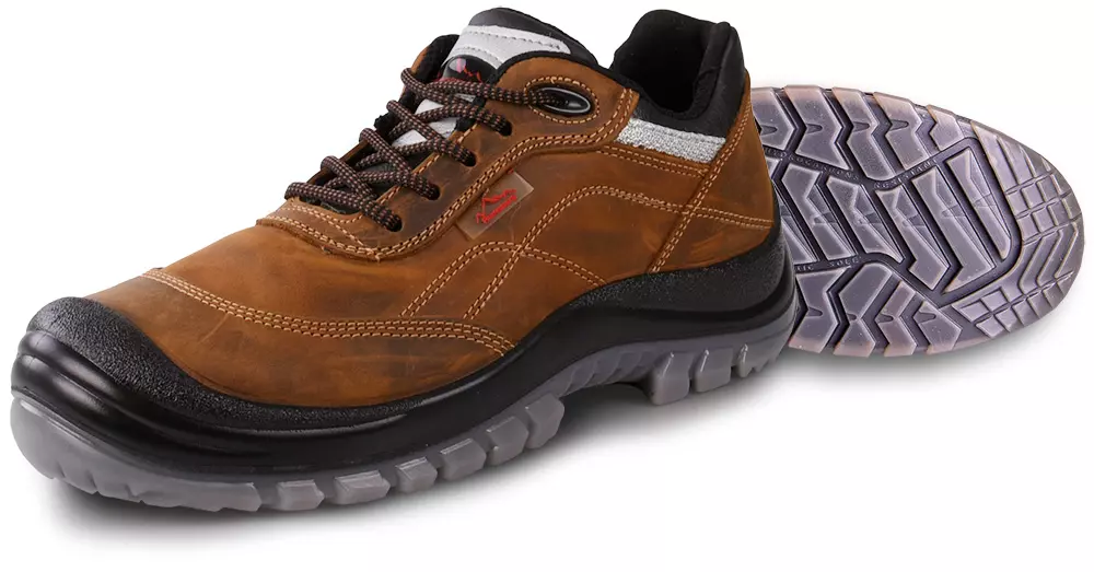 S3 safety low shoe made of nubuck leather with special 2-layer PU outsole, breathable lining, self-resetting plastic toe cap and L-Protection® ceramic midsole, reflective insert, DGUV 112-191. EN ISO 20345