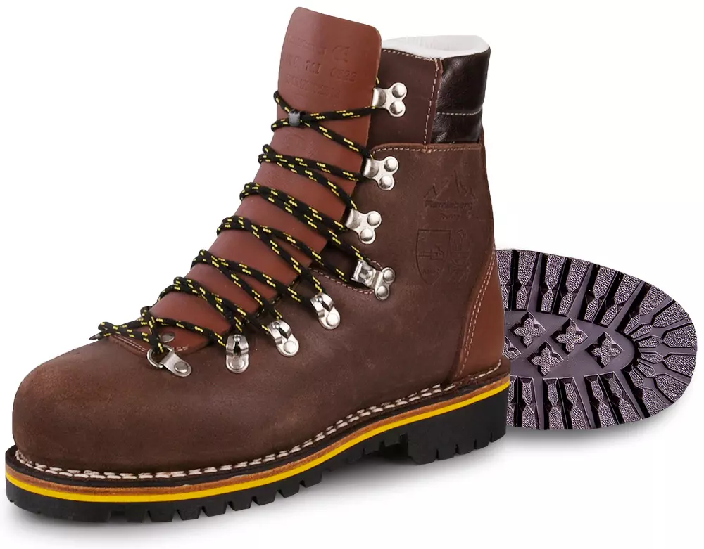 Forestry boots made of greased and durable Swiss Russia cowhide with leather insole, double-stitched, full leather lining and soft collar, steel toe cap, for medium terrain, cut protection class 2, shaft height 18 cm. EN ISO 20345:2011, EN ISO 17249:2013