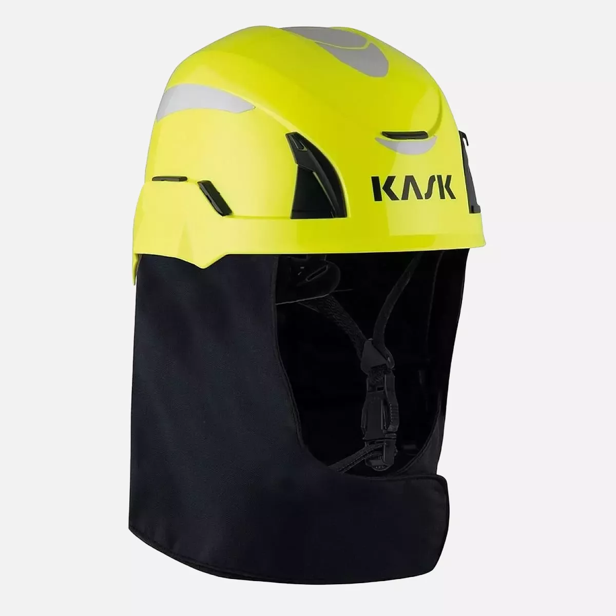 The Neck Protector FR from KASK is a flame and fire-resistant full protection for the neck that also protects the wearer against heat and chemicals. The Velcro fastener on the front ensures secure protection of skin and body parts. Compatible with all KASK Quantum helmets. The Quantum Neck Protector FR, which is mounted on the Quantum helmet, makes the helmet suitable for use in firefighting (EN16471) and technical rescue (EN16473) with potential flame exposure.