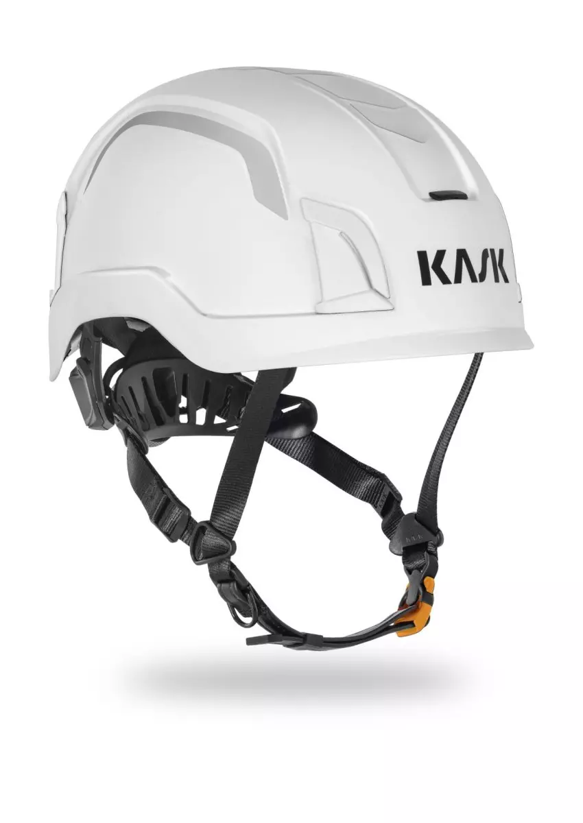 The new Zenith X HI VIZ - EN397 - EN 50365 (Class 0) from KASK is a multifunctional safety helmet with numerous accessory options for enhanced protection in high-voltage environments. It is adjustable for head sizes from 52 cm to 63 cm. The helmet's inner shell is equipped with a high-density inner core, ensuring optimal protection against impacts from above. Another highlight of this helmet is the adaptive adjustment system. A new double-diameter adjustment wheel allows for easier size adjustment. The ergonomic side wings also ensure a faster, secure fit at the back of the head. The patented Self Adaptive Live Hinge System is the latest self-adjusting technology that adapts to the wearer's movements.