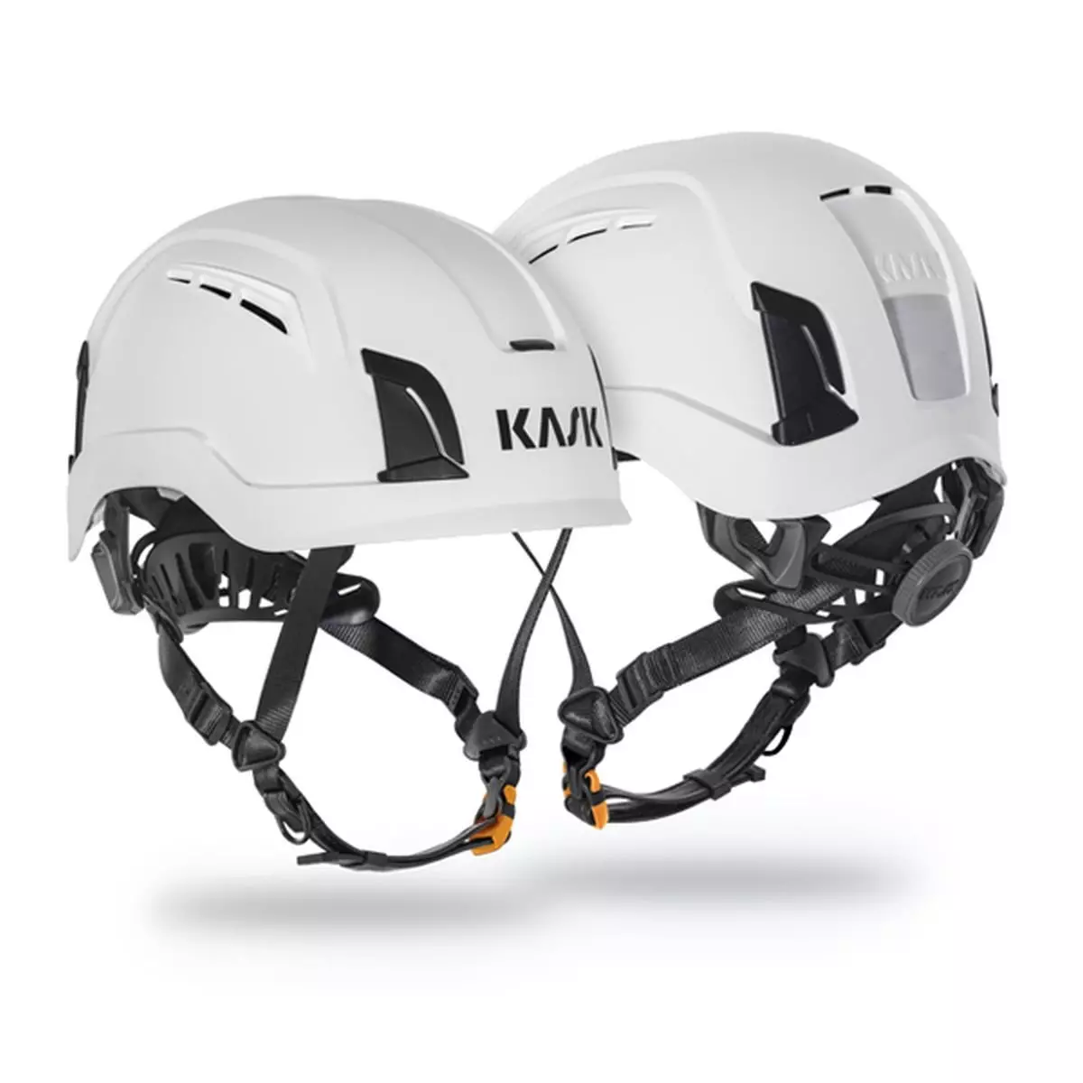 The new Zenith X AIR - EN397 - EN 50365 (Class 0) from KASK is a multifunctional safety helmet that additionally offers protection against impacts from above, front, back, and sides according to EN 12492. The 8 air inlets ensure perfect internal airflow and excellent ventilation of the helmet. It is adjustable for head sizes from 52 cm to 63 cm. The inner shell of the helmet is equipped with a high-density inner core, ensuring optimal protection against impacts from above. Another highlight of this helmet is the adaptive adjustment system. A new double-diameter adjustment wheel allows for easier size adjustment. The ergonomic side wings also ensure a faster, secure fit at the back of the head. The patented Self Adaptive Live Hinge System is the latest self-adjusting technology that adapts to the wearer's movements.