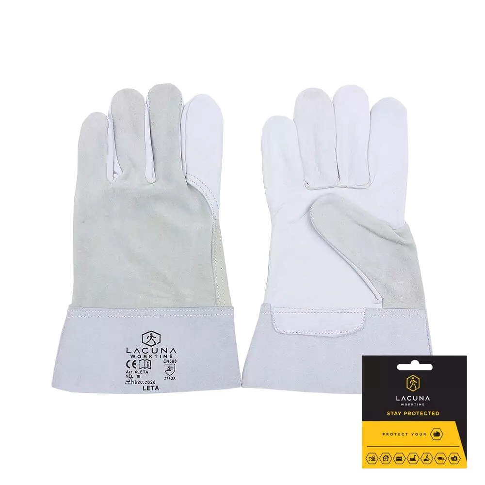 Description: Cow gloves for mechanical protection with reinforcements on thumb, forefinger and at fingertips,