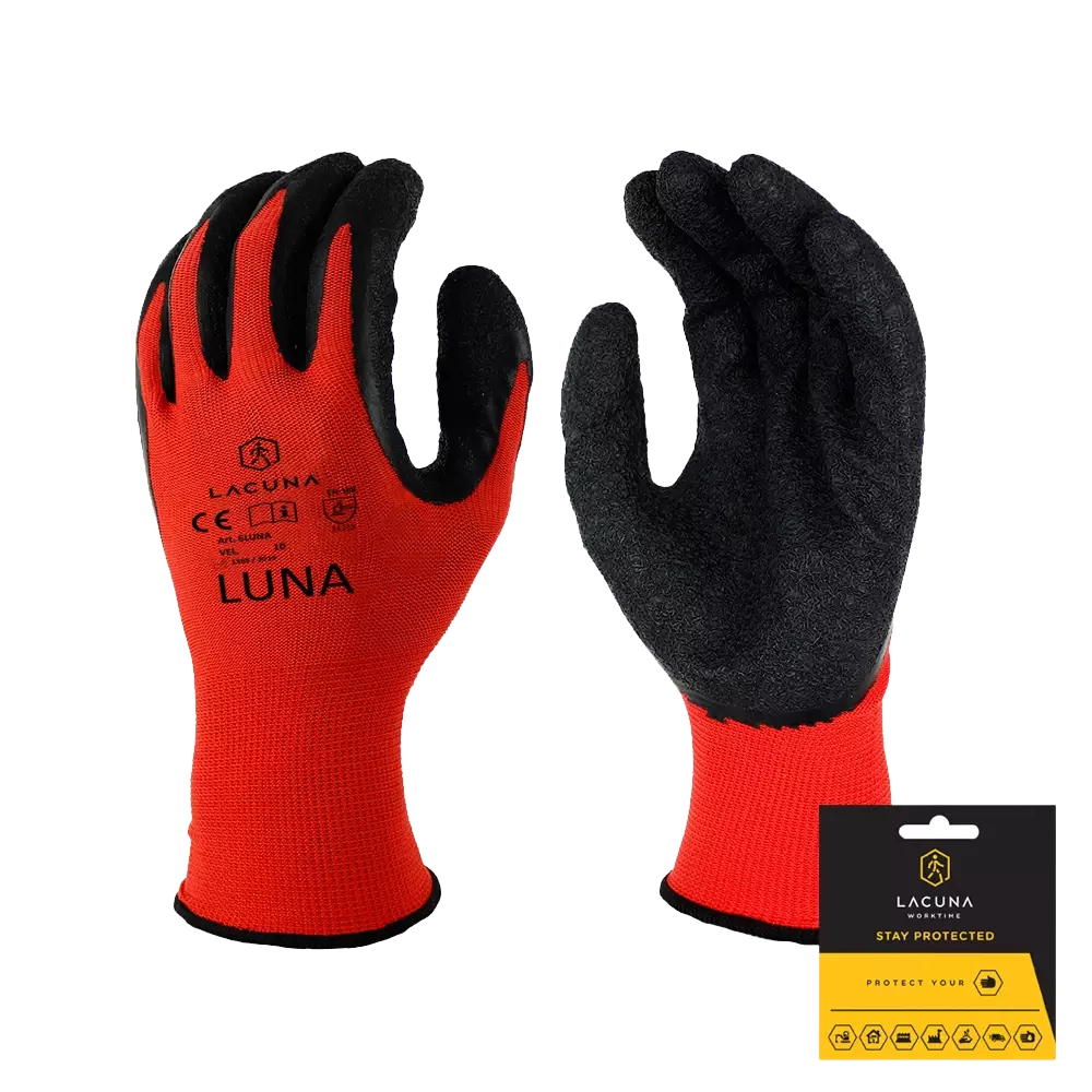 Description: Knitted gloves with latex coating and elastic cuff for precision work Material: red nylon knit Coating: palm black latex coating Standards: EN420, EN388 (3131X) Size: 10 Packaging: 1 pair Old item code: 61WT70R Barcode: 3858890110036 Unite of measure: pair Packaging/minimum order quantity: 1 Full box quantity: 120